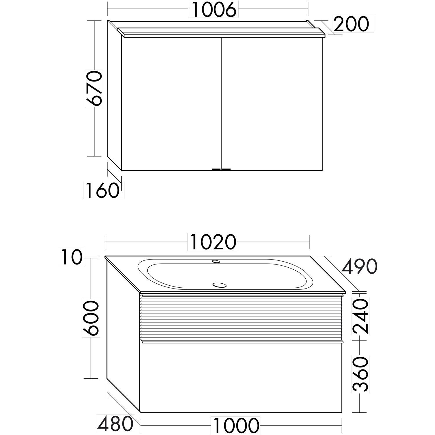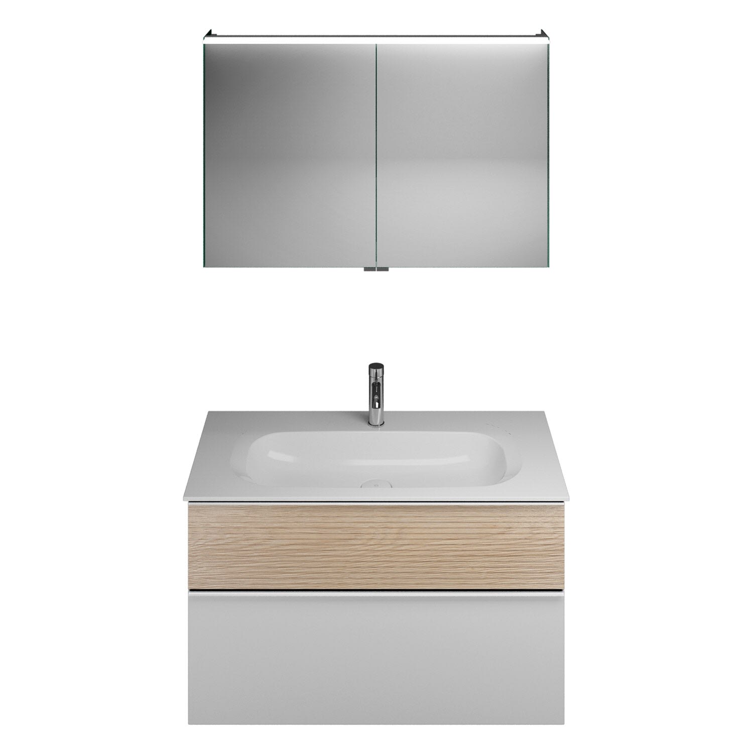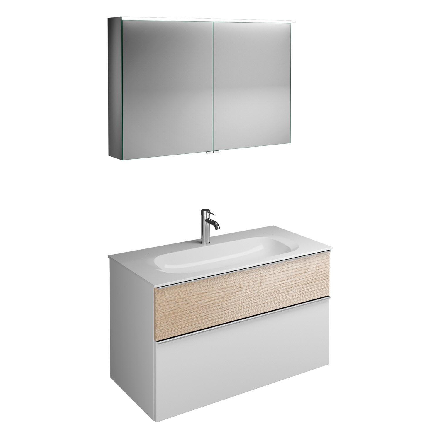 burgbad Fiumo Badmöbel-Set 102 cm mit Waschtisch und Unterschrank mit Griff G0146 sowie mit Spiegelschrank