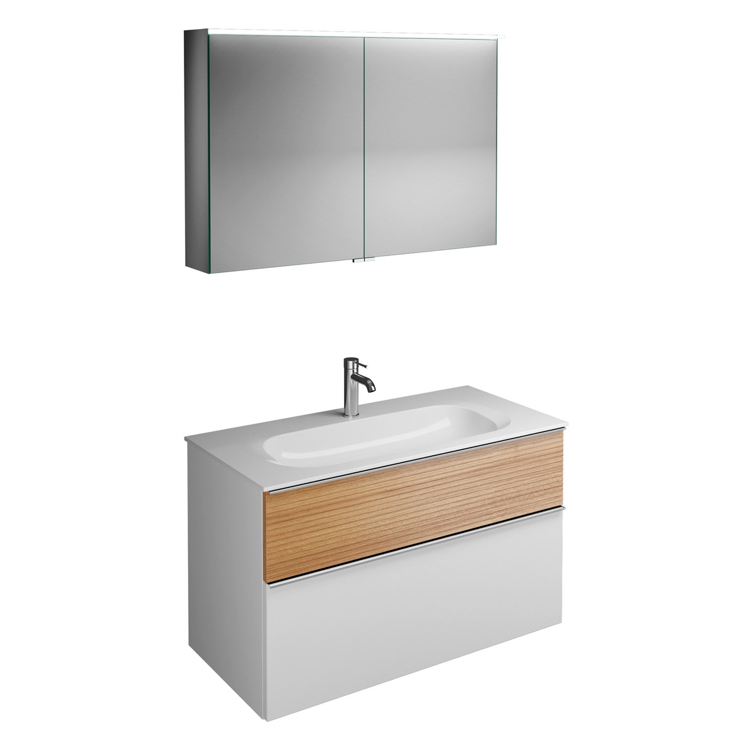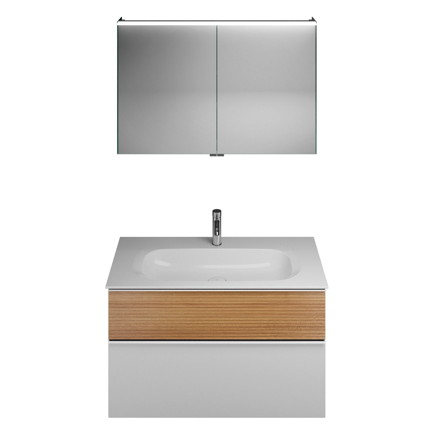 burgbad Fiumo Badmöbel-Set 102 cm mit Waschtisch und Unterschrank mit Griff G0146 sowie mit Spiegelschrank