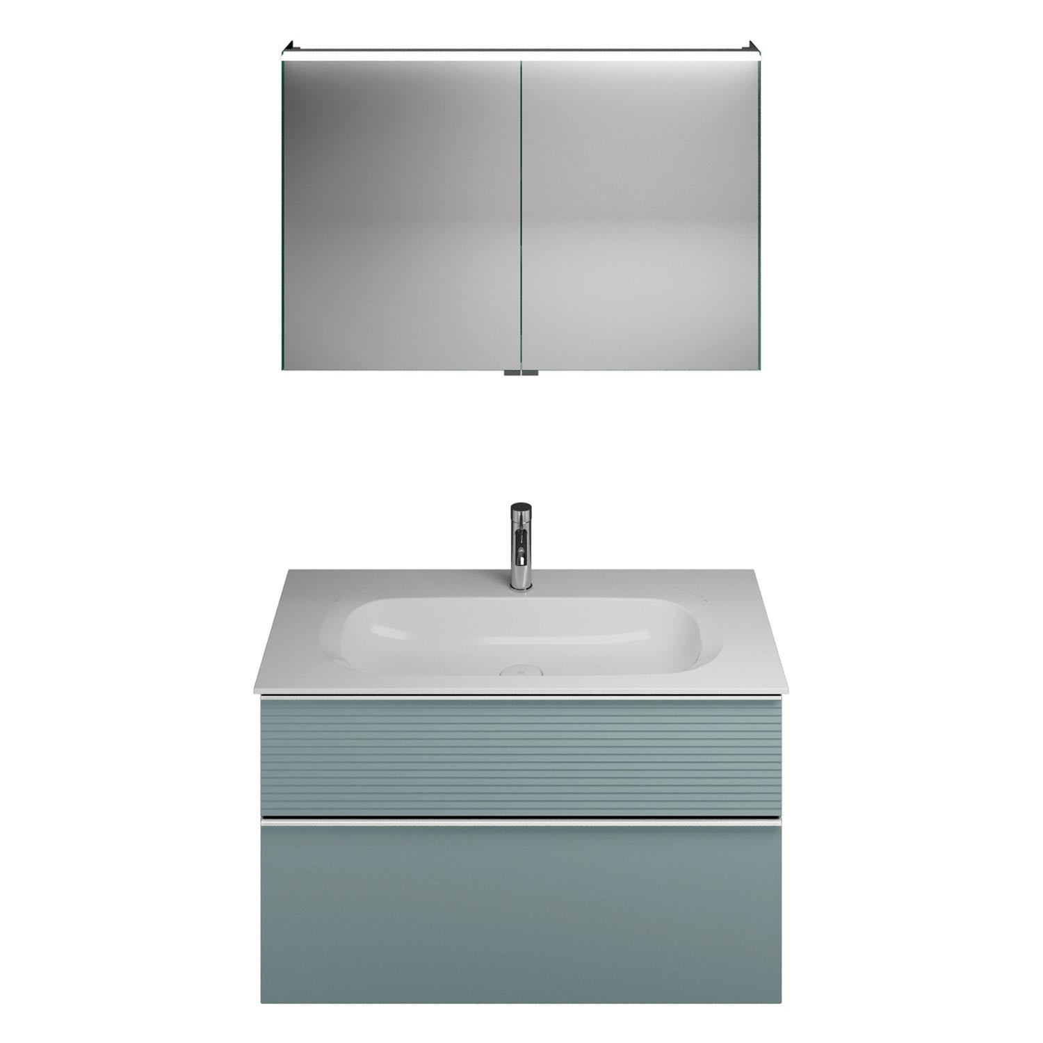 burgbad Fiumo Badmöbel-Set 102 cm mit Waschtisch und Unterschrank mit Griff G0146 sowie mit Spiegelschrank