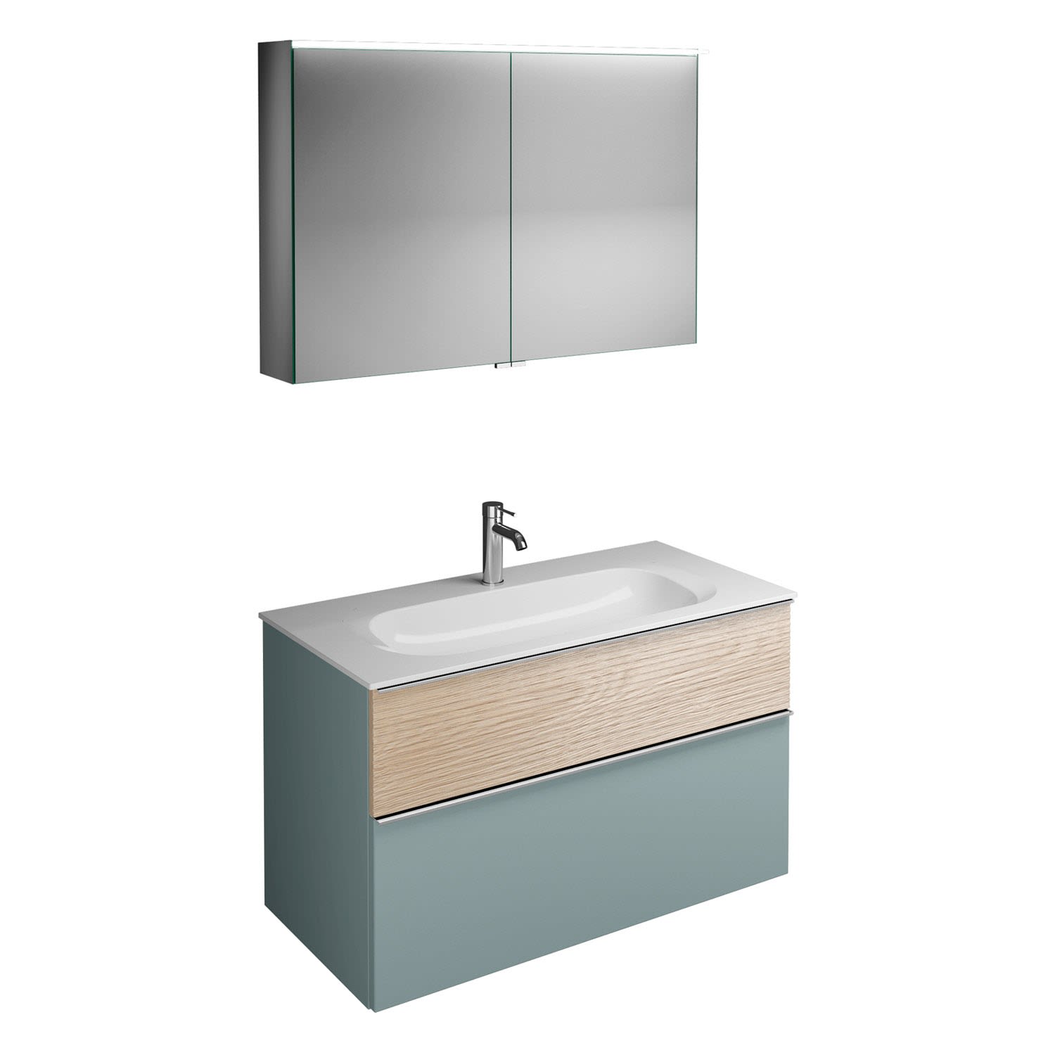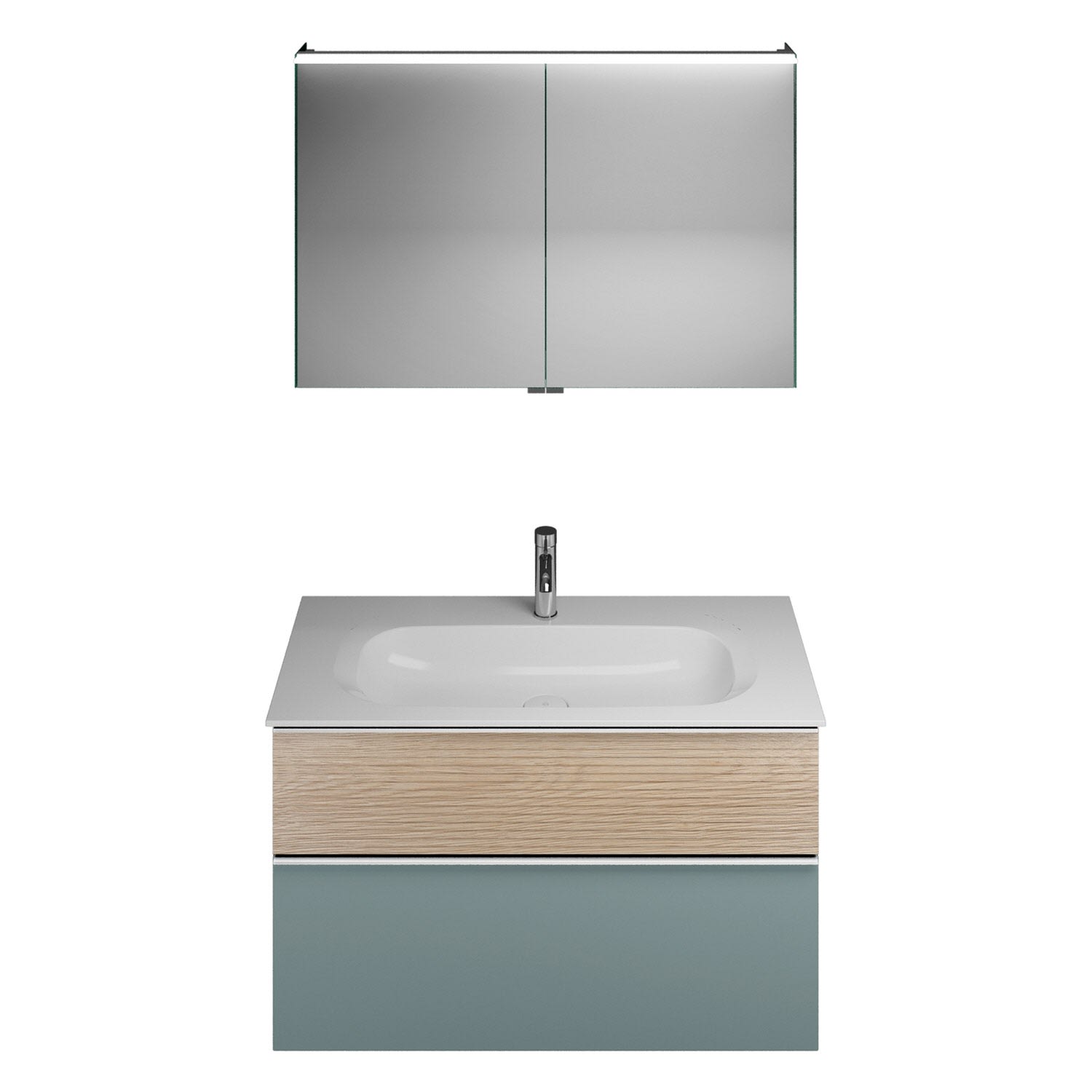 burgbad Fiumo Badmöbel-Set 102 cm mit Waschtisch und Unterschrank mit Griff G0146 sowie mit Spiegelschrank