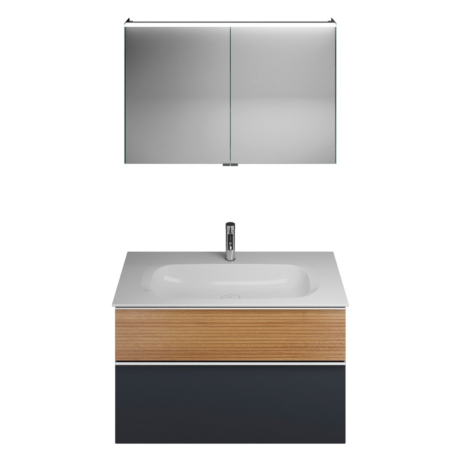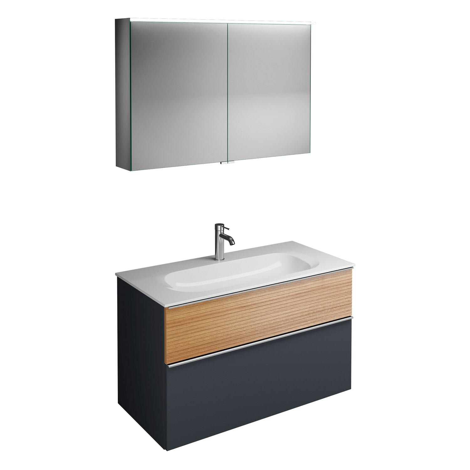 burgbad Fiumo Badmöbel-Set 102 cm mit Waschtisch und Unterschrank mit Griff G0146 sowie mit Spiegelschrank