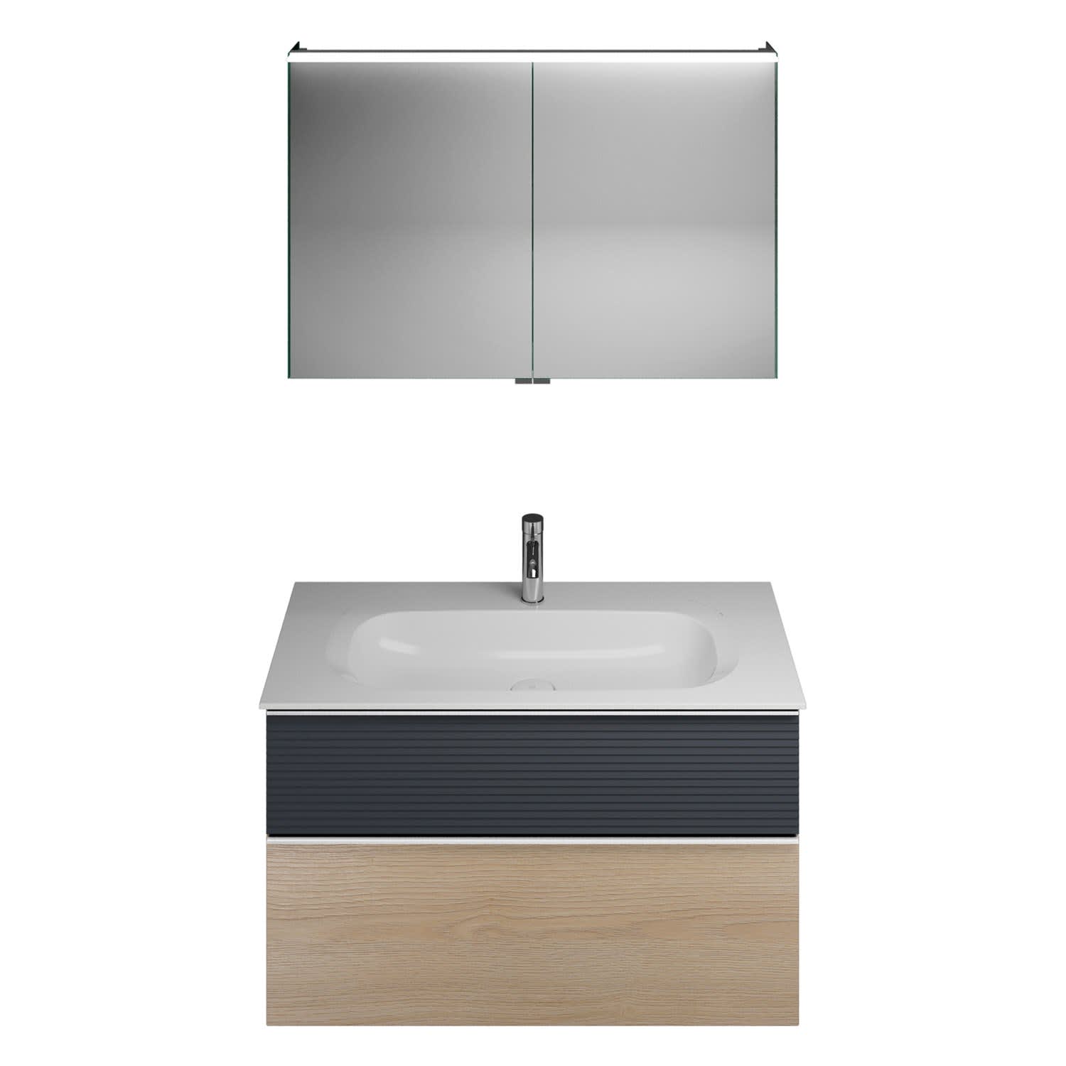 burgbad Fiumo Badmöbel-Set 102 cm mit Waschtisch und Unterschrank mit Griff G0146 sowie mit Spiegelschrank