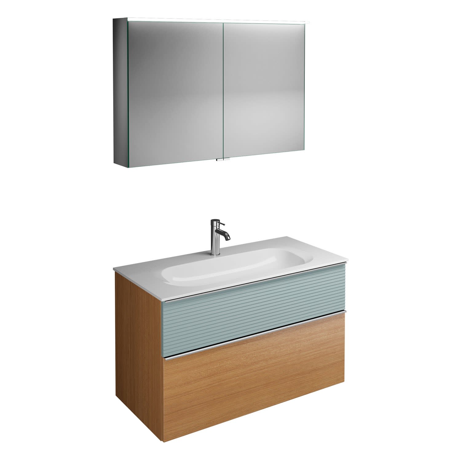 burgbad Fiumo Badmöbel-Set 102 cm mit Waschtisch und Unterschrank mit Griff G0146 sowie mit Spiegelschrank