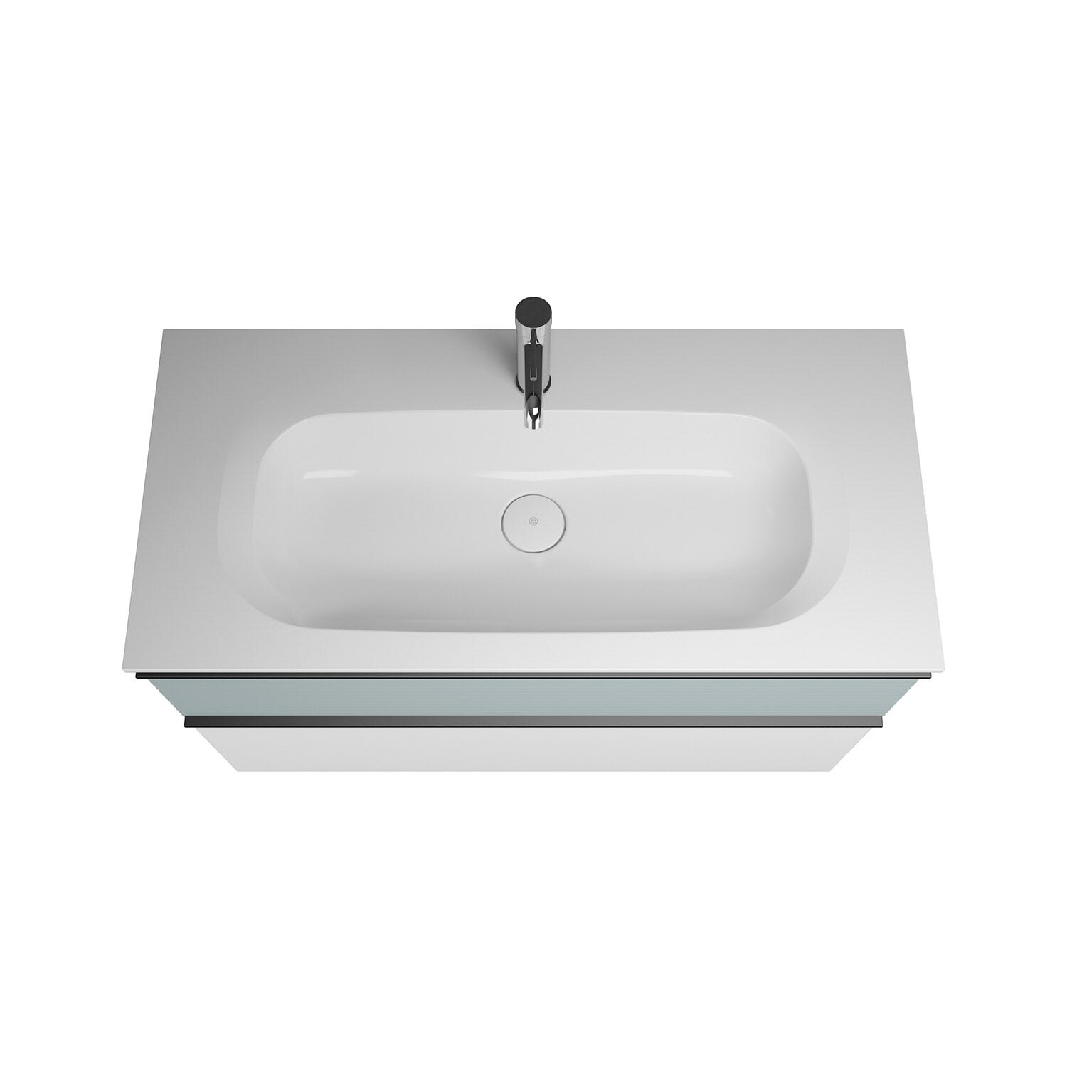 burgbad Fiumo Badmöbel-Set 102 cm mit Waschtisch und Unterschrank mit Griff G0200 sowie mit Spiegelschrank