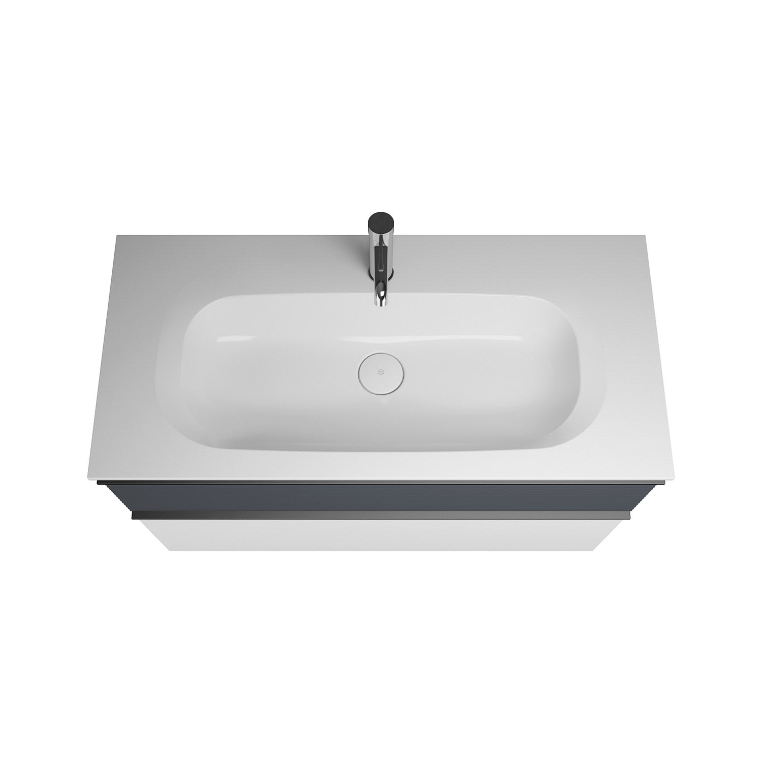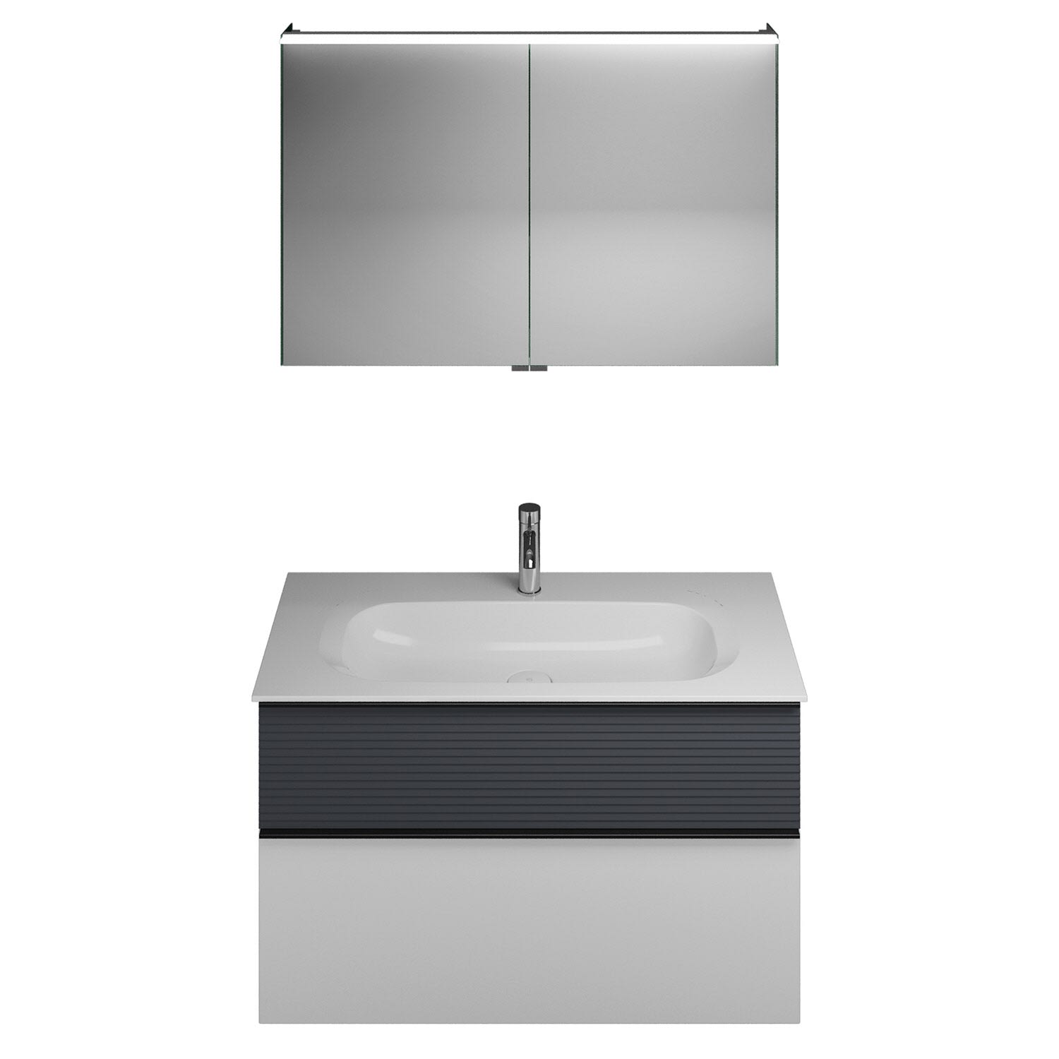burgbad Fiumo Badmöbel-Set 102 cm mit Waschtisch und Unterschrank mit Griff G0200 sowie mit Spiegelschrank