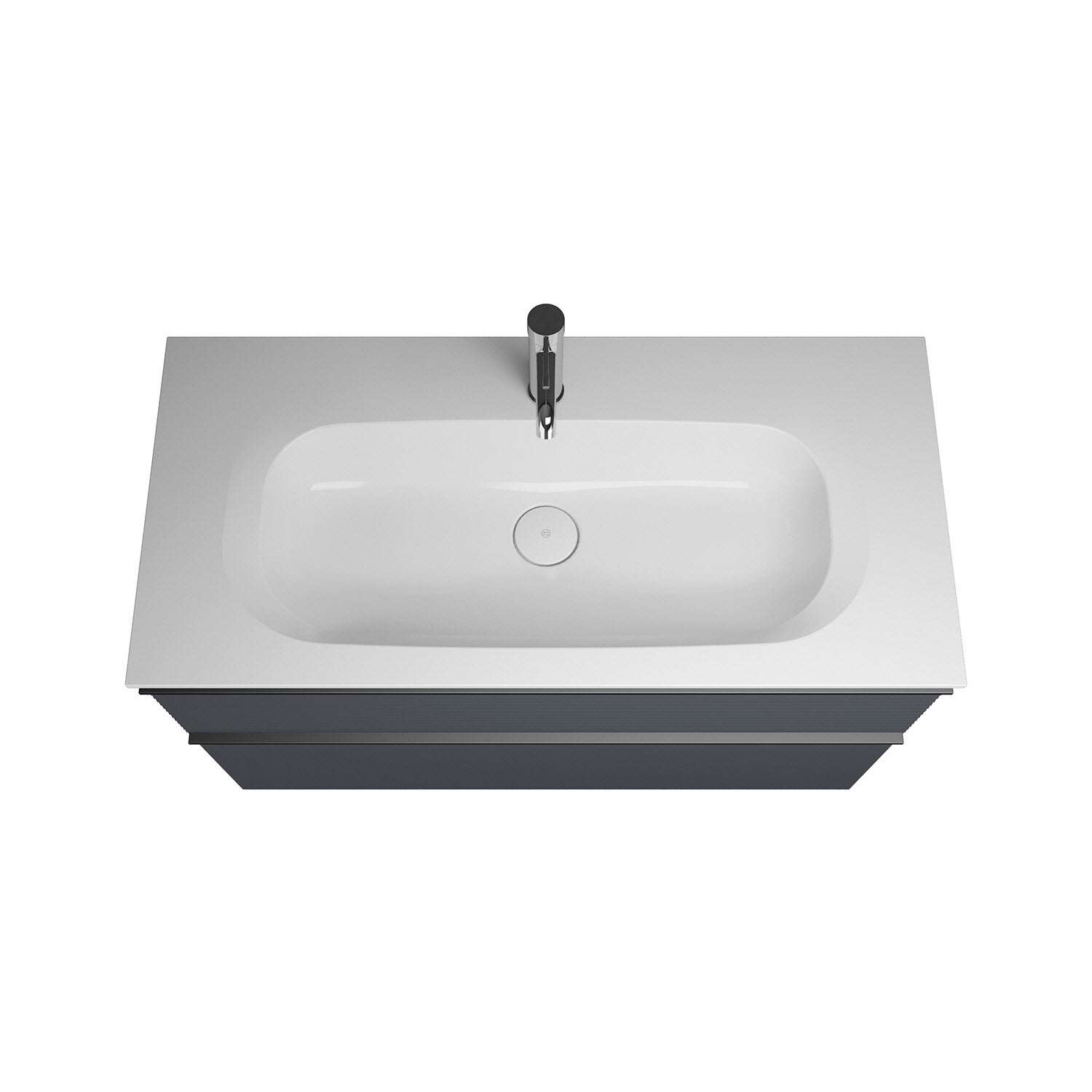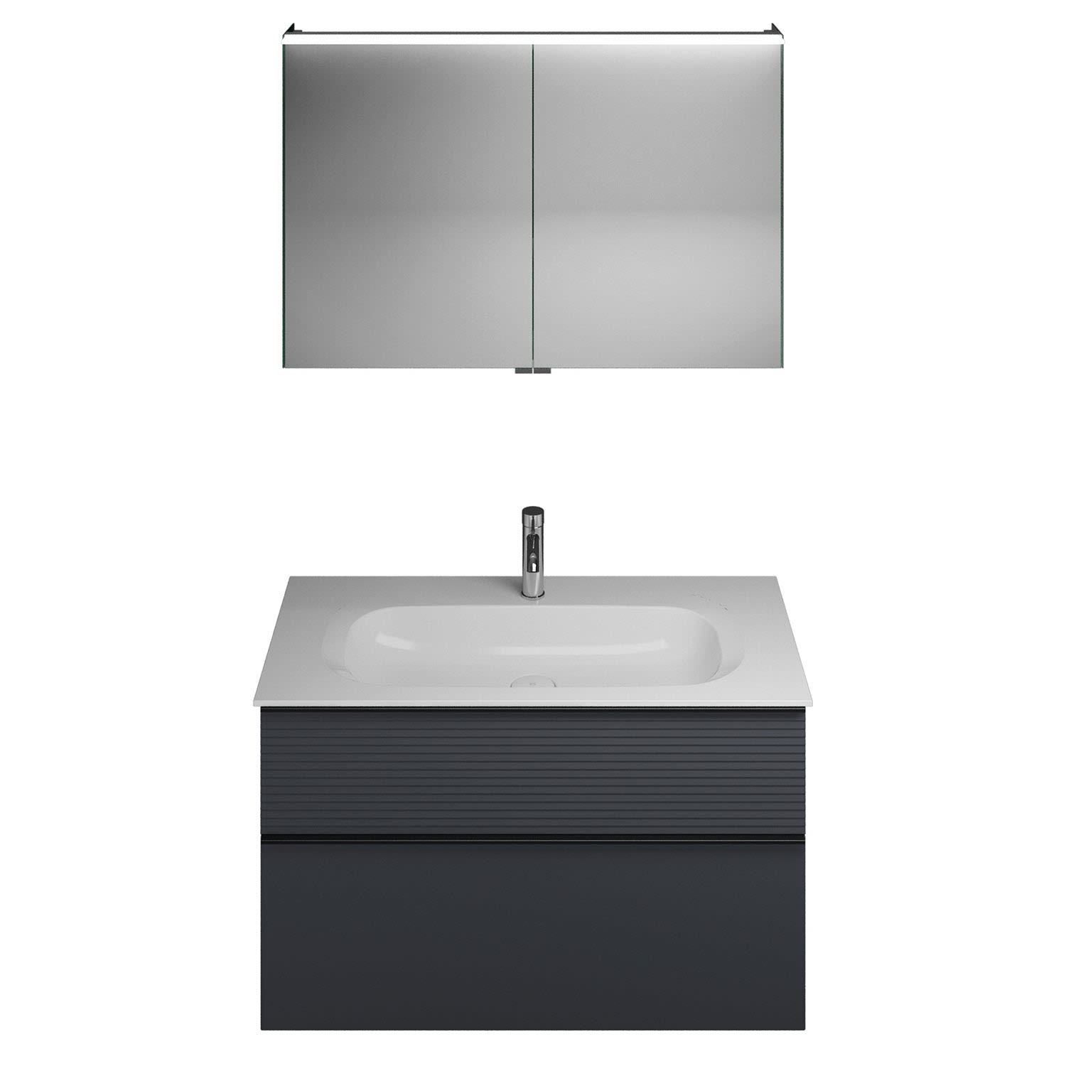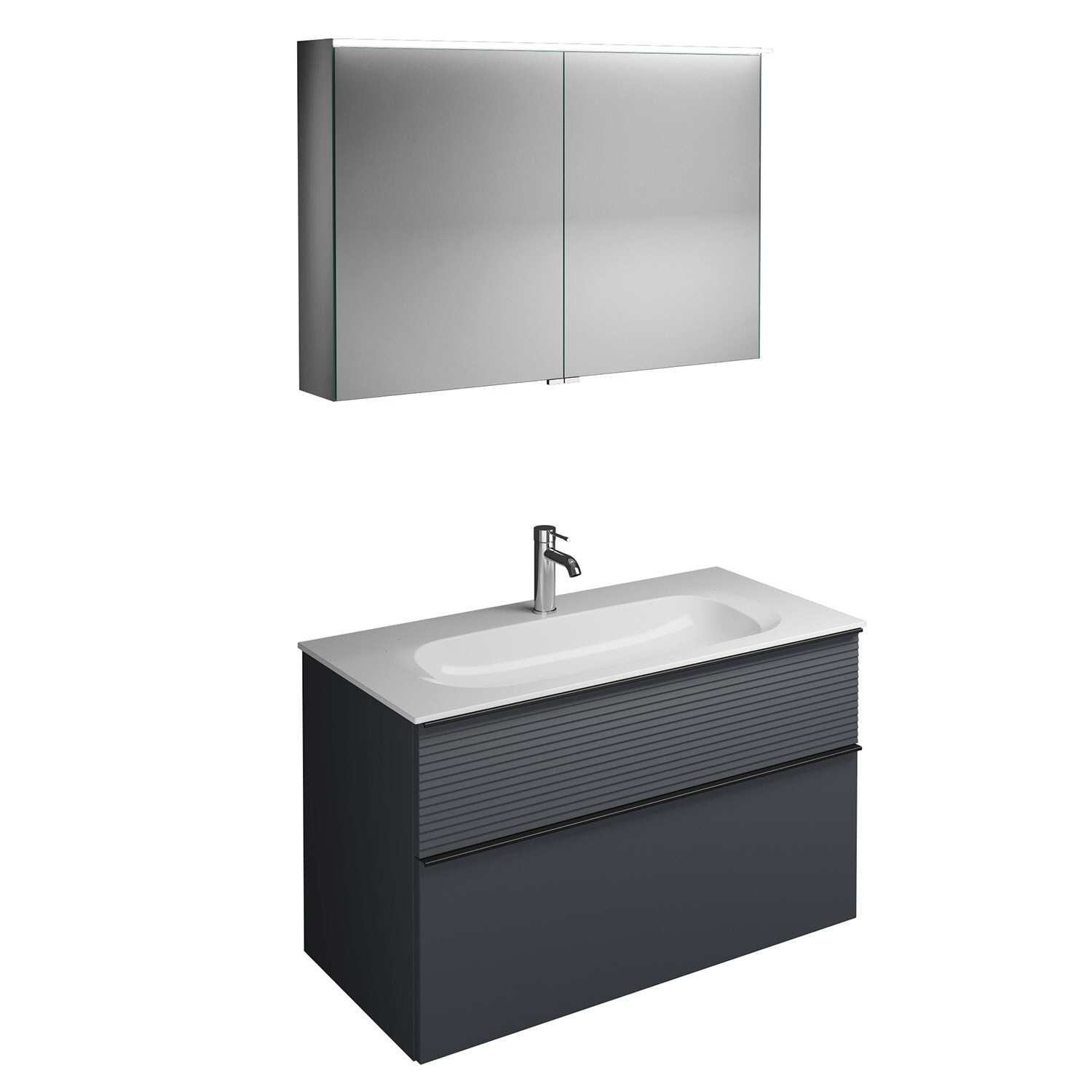 burgbad Fiumo Badmöbel-Set 102 cm mit Waschtisch und Unterschrank mit Griff G0200 sowie mit Spiegelschrank