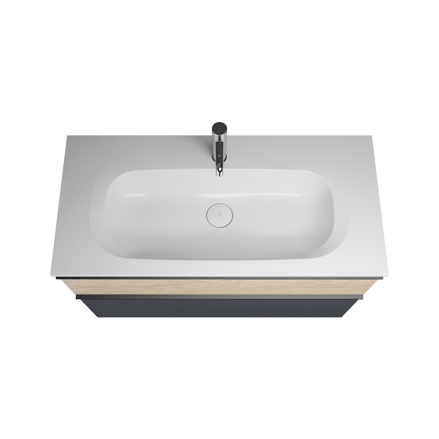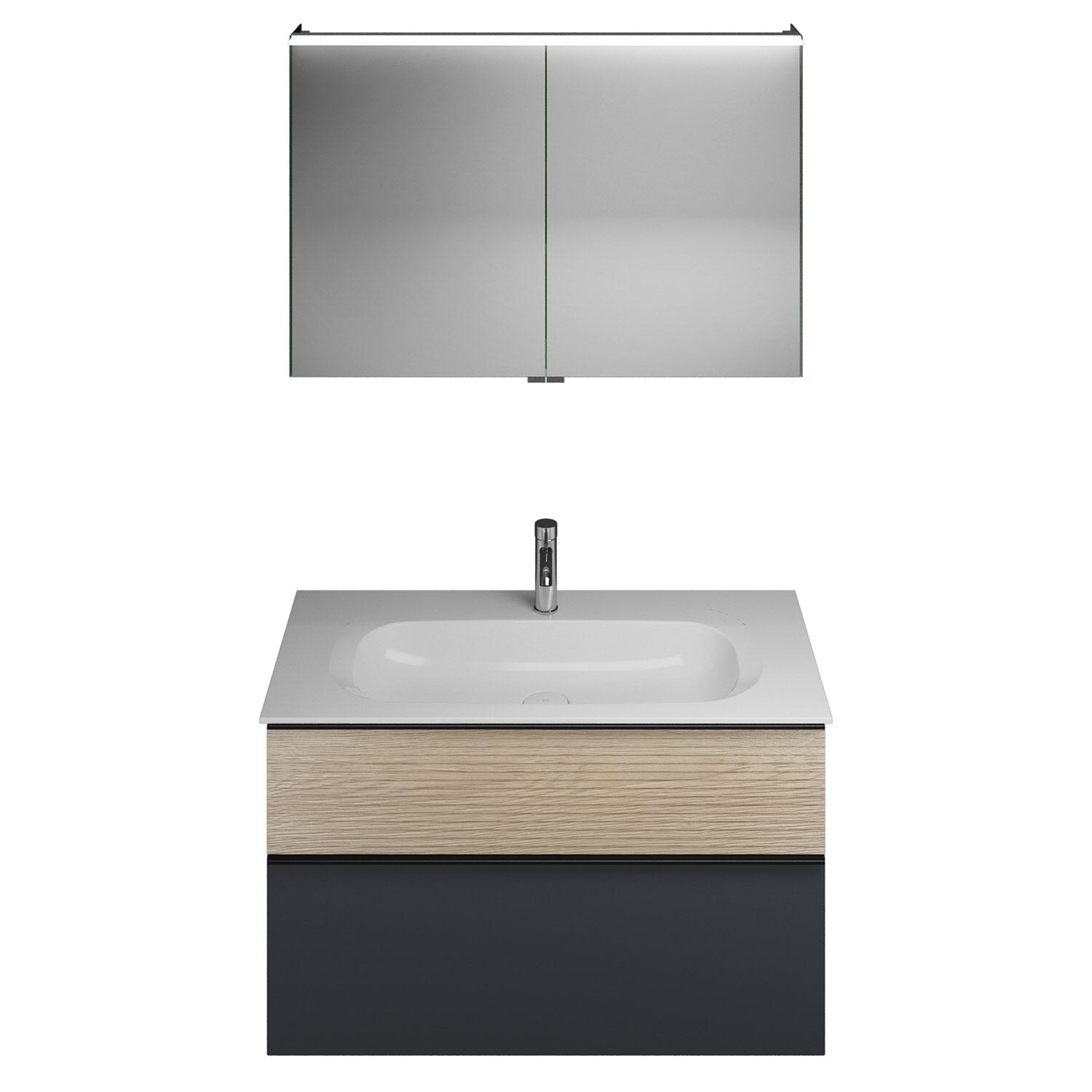 burgbad Fiumo Badmöbel-Set 102 cm mit Waschtisch und Unterschrank mit Griff G0200 sowie mit Spiegelschrank