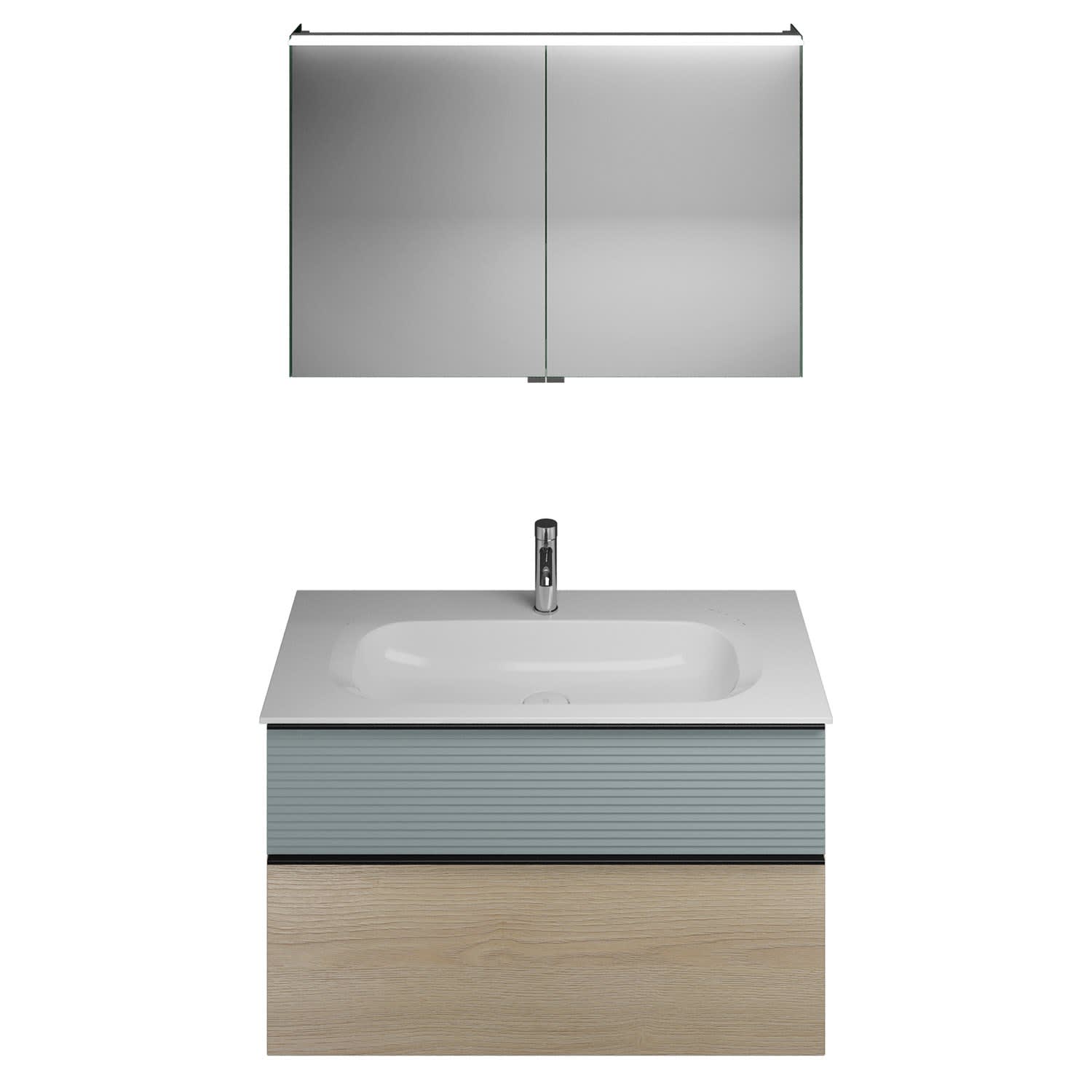 burgbad Fiumo Badmöbel-Set 102 cm mit Waschtisch und Unterschrank mit Griff G0200 sowie mit Spiegelschrank