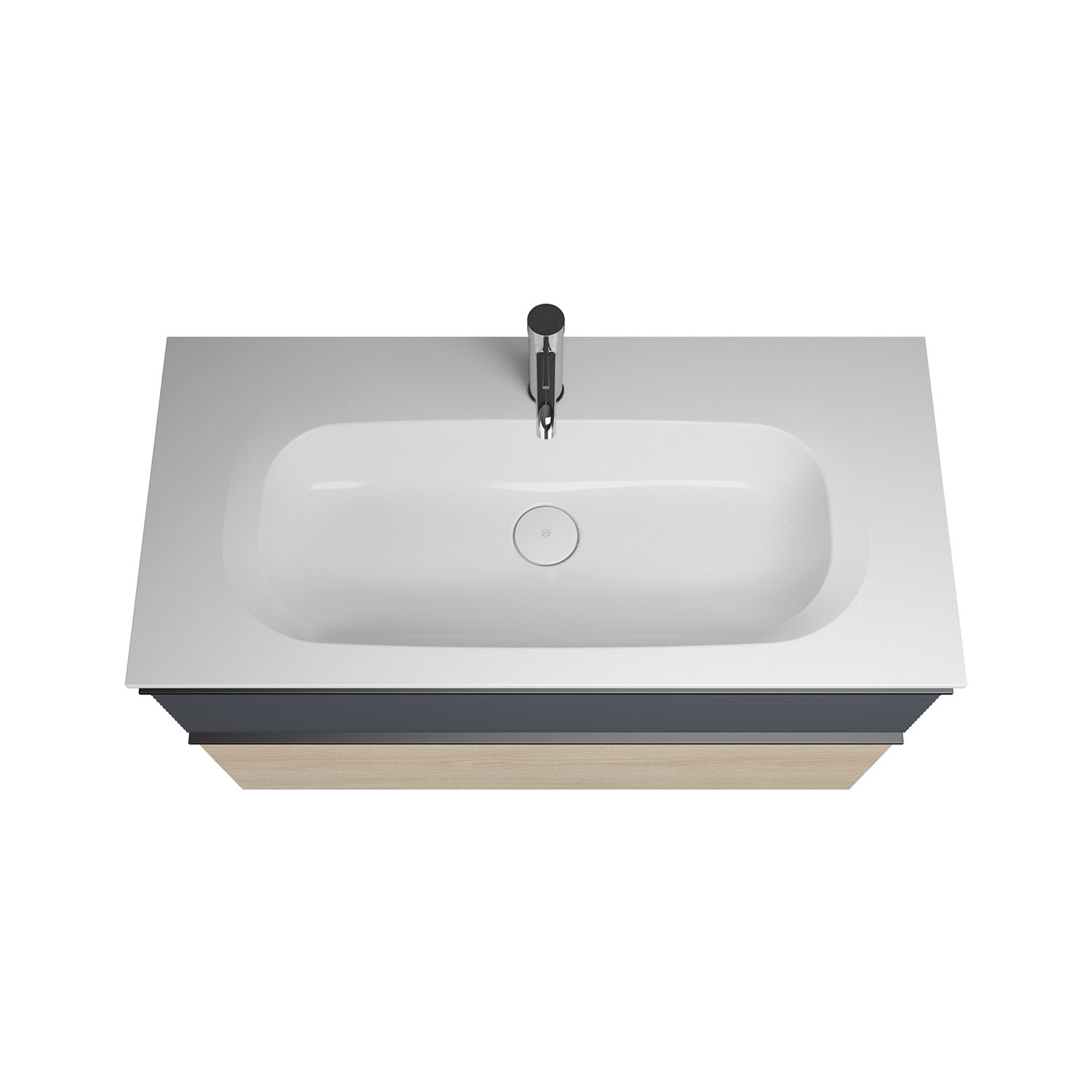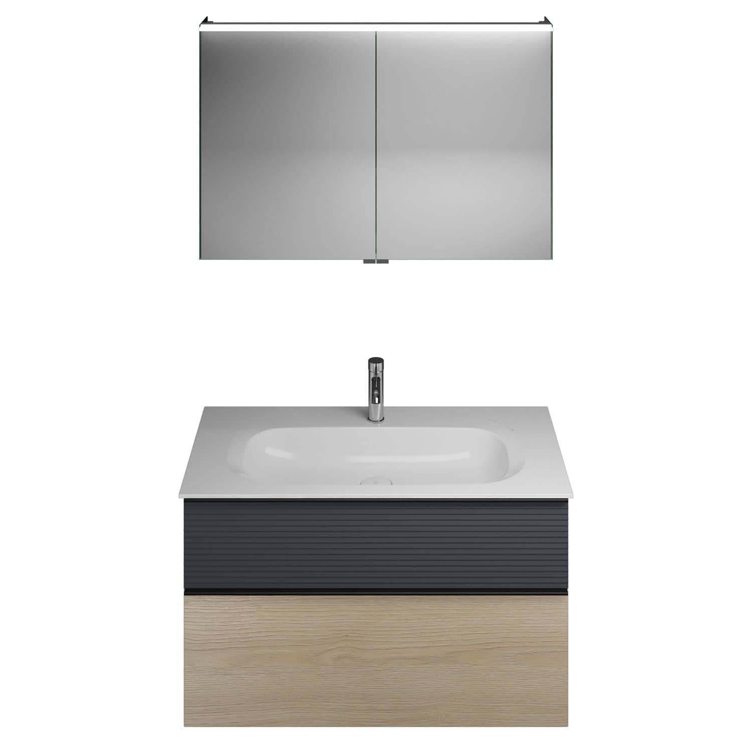 burgbad Fiumo Badmöbel-Set 102 cm mit Waschtisch und Unterschrank mit Griff G0200 sowie mit Spiegelschrank