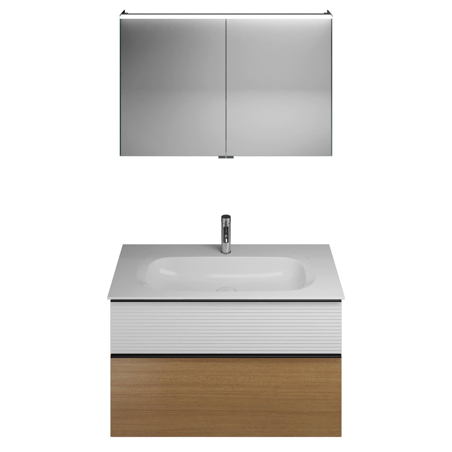 burgbad Fiumo Badmöbel-Set 102 cm mit Waschtisch und Unterschrank mit Griff G0200 sowie mit Spiegelschrank