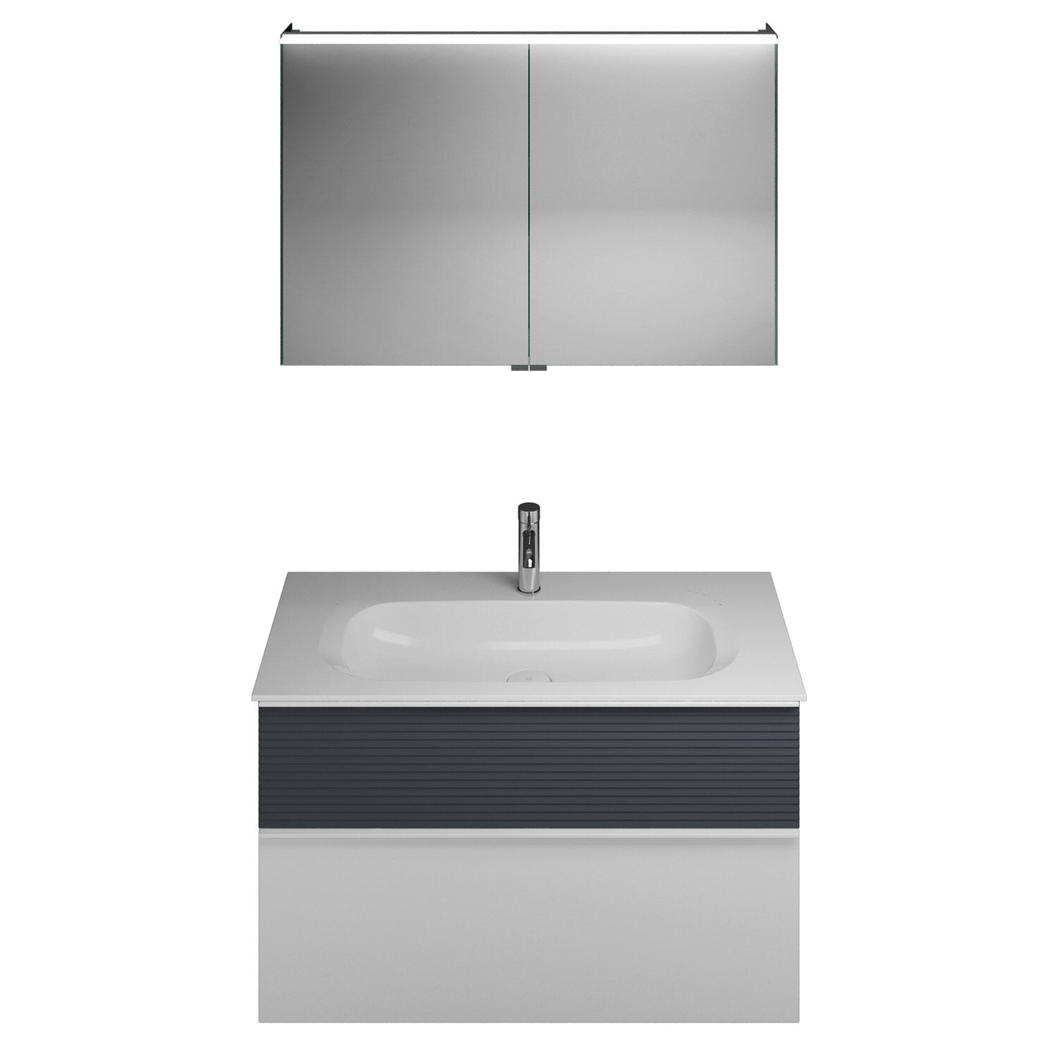 burgbad Fiumo Badmöbel-Set 102 cm mit Waschtisch und Unterschrank mit Griff G0223 sowie mit Spiegelschrank