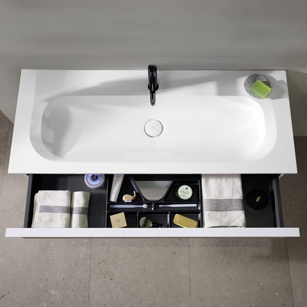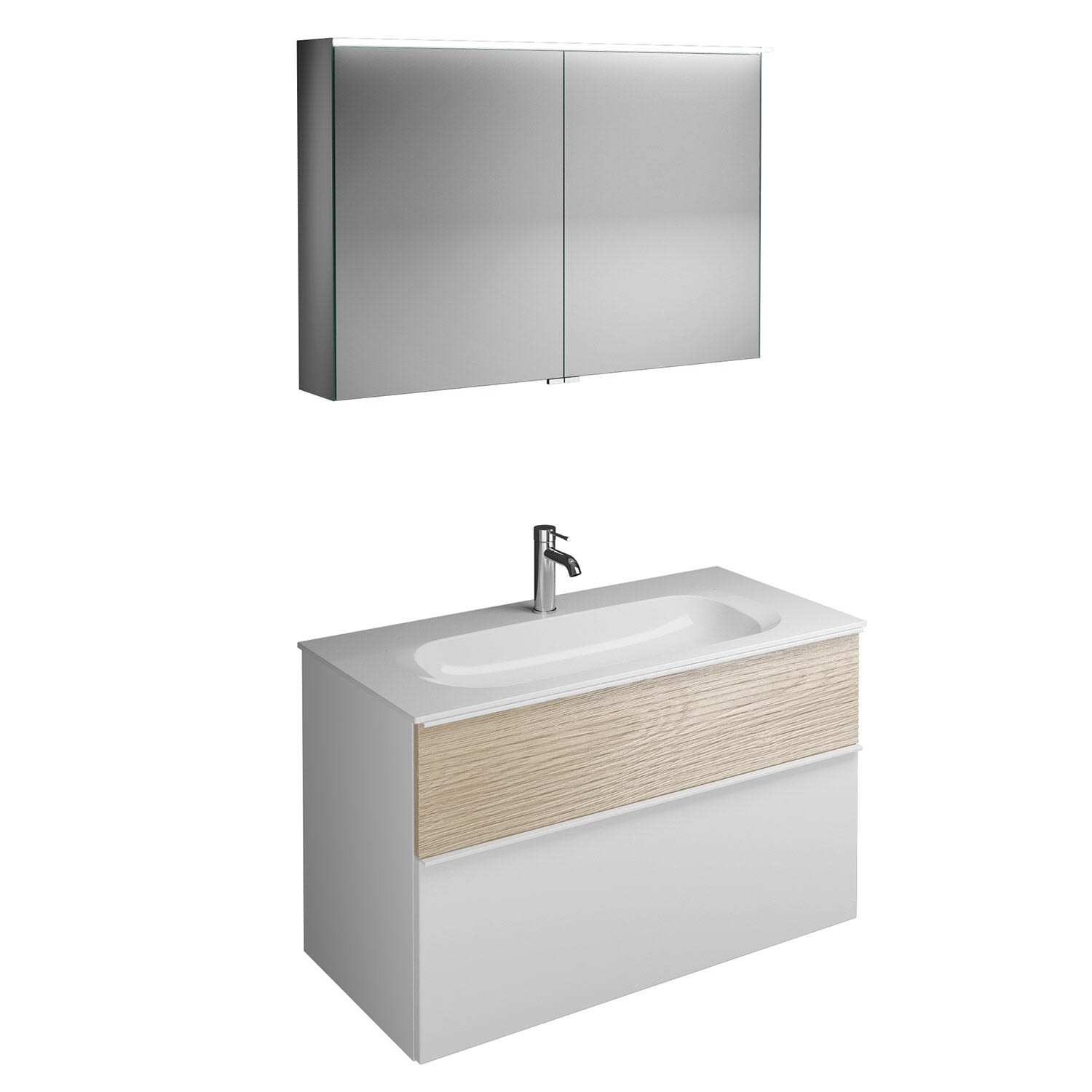 burgbad Fiumo Badmöbel-Set 102 cm mit Waschtisch und Unterschrank mit Griff G0223 sowie mit Spiegelschrank