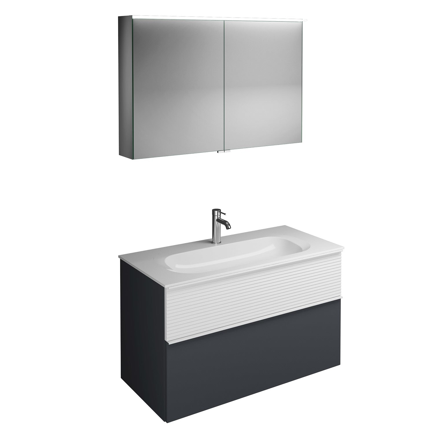 burgbad Fiumo Badmöbel-Set 102 cm mit Waschtisch und Unterschrank mit Griff G0223 sowie mit Spiegelschrank