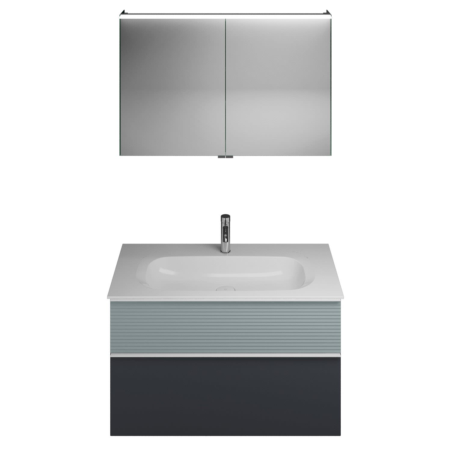 burgbad Fiumo Badmöbel-Set 102 cm mit Waschtisch und Unterschrank mit Griff G0223 sowie mit Spiegelschrank