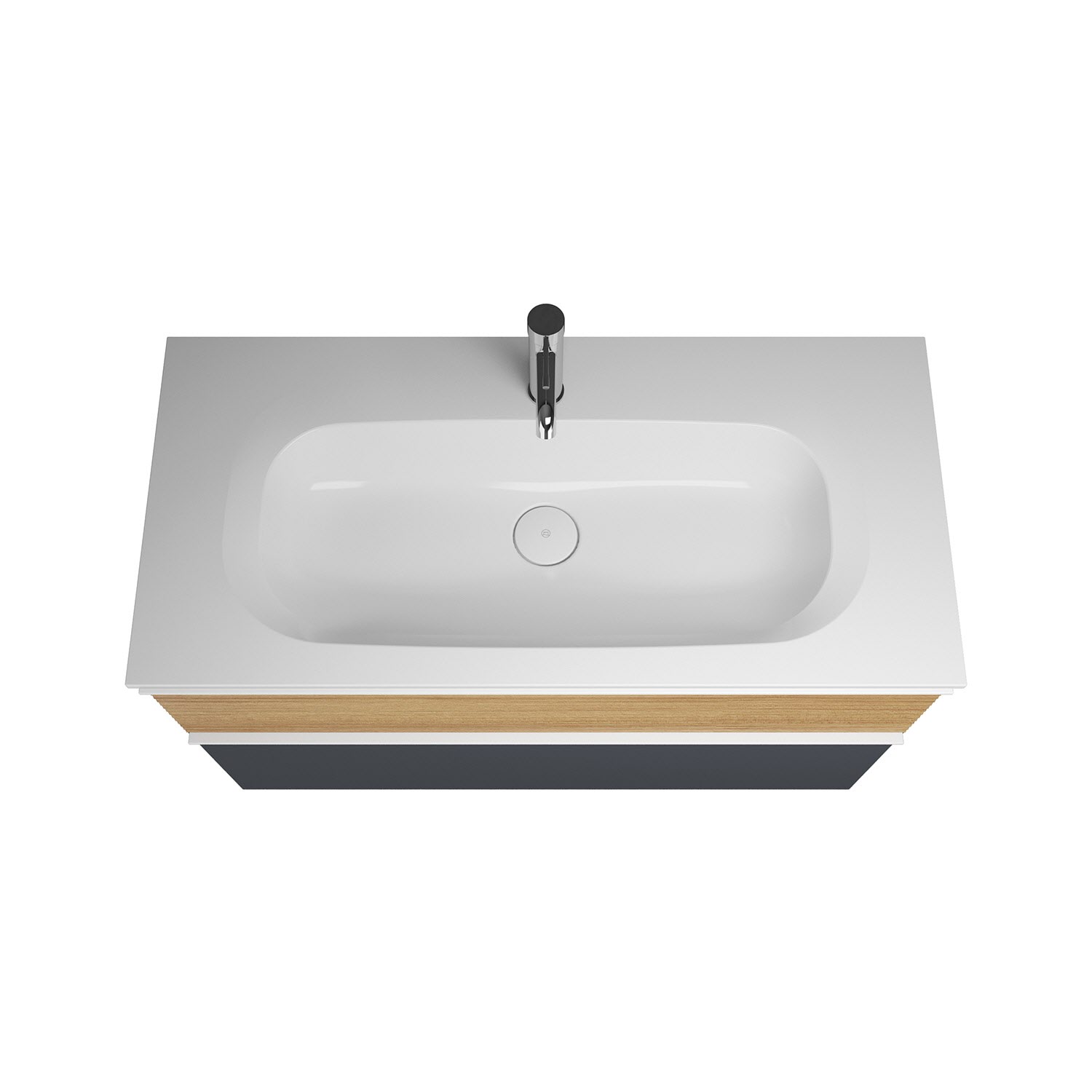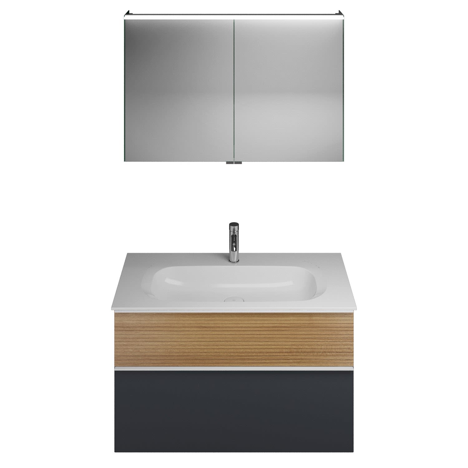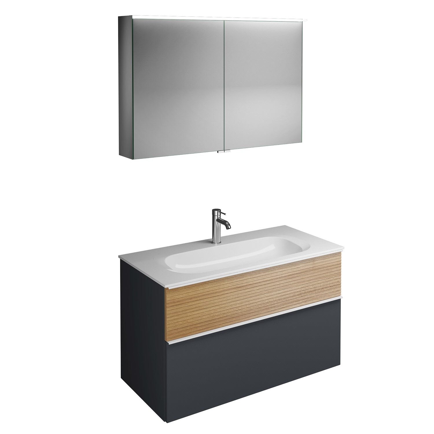 burgbad Fiumo Badmöbel-Set 102 cm mit Waschtisch und Unterschrank mit Griff G0223 sowie mit Spiegelschrank