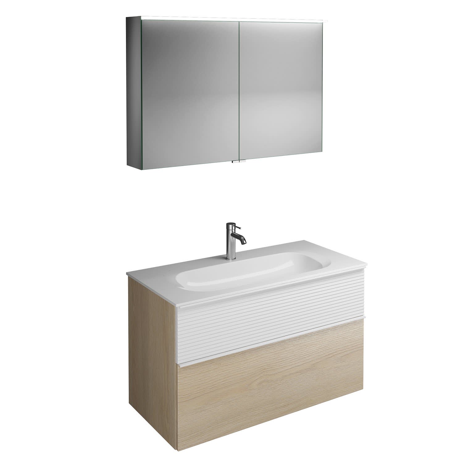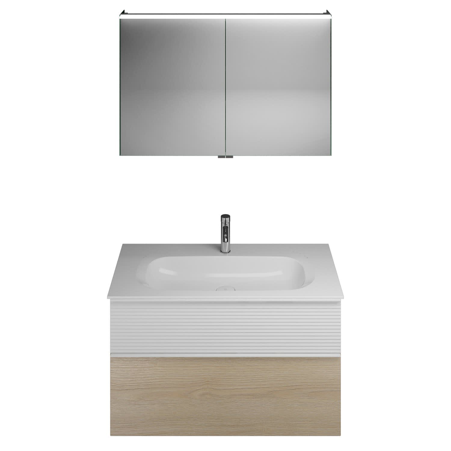 burgbad Fiumo Badmöbel-Set 102 cm mit Waschtisch und Unterschrank mit Griff G0223 sowie mit Spiegelschrank
