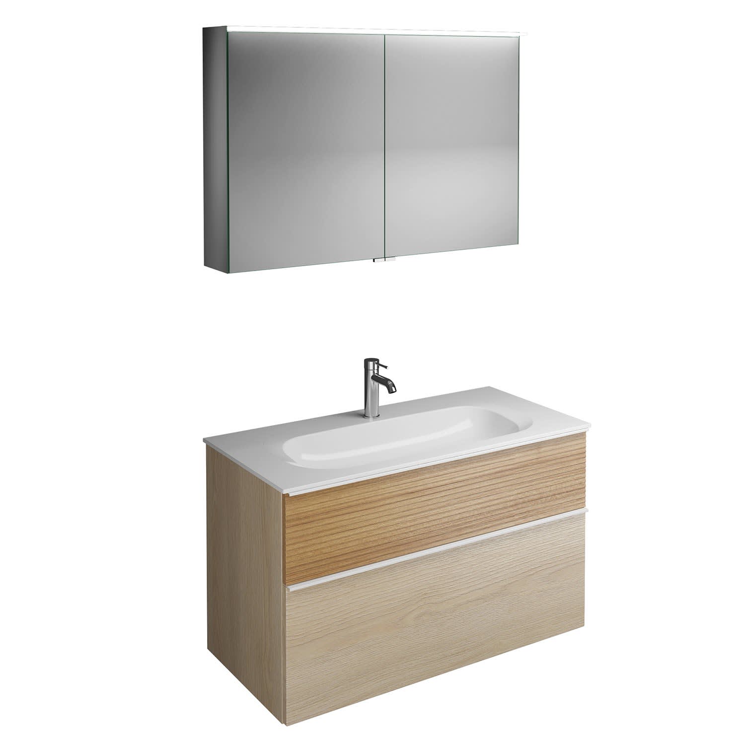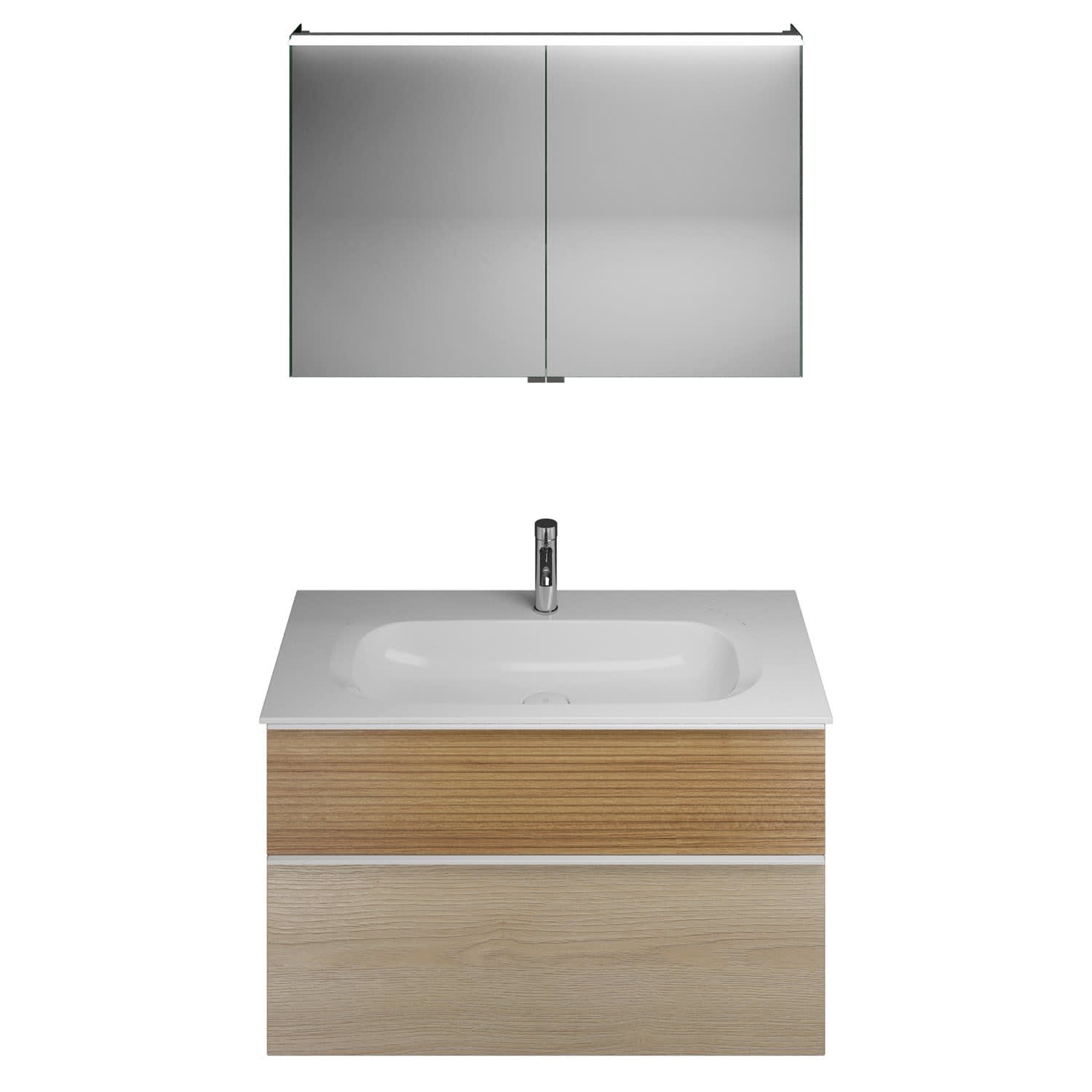 burgbad Fiumo Badmöbel-Set 102 cm mit Waschtisch und Unterschrank mit Griff G0223 sowie mit Spiegelschrank