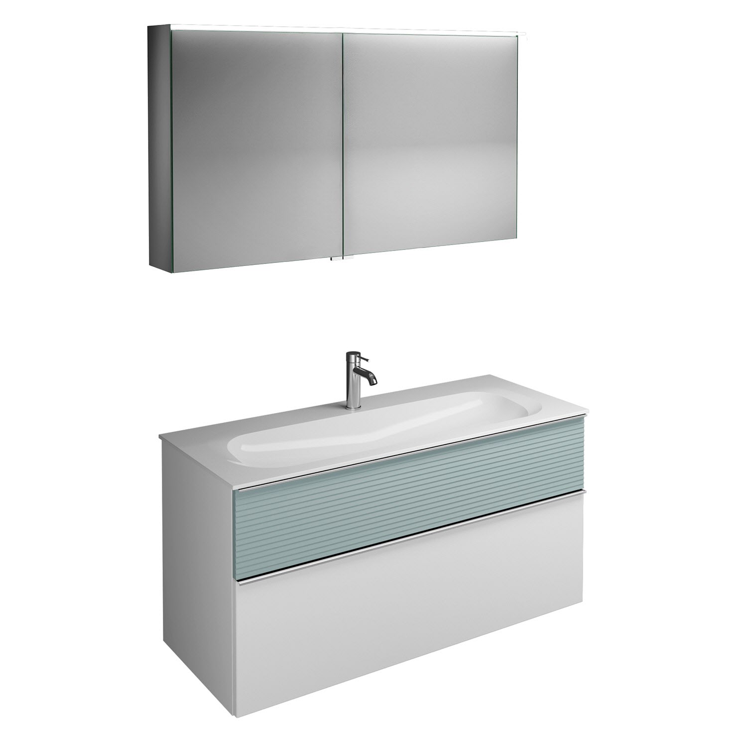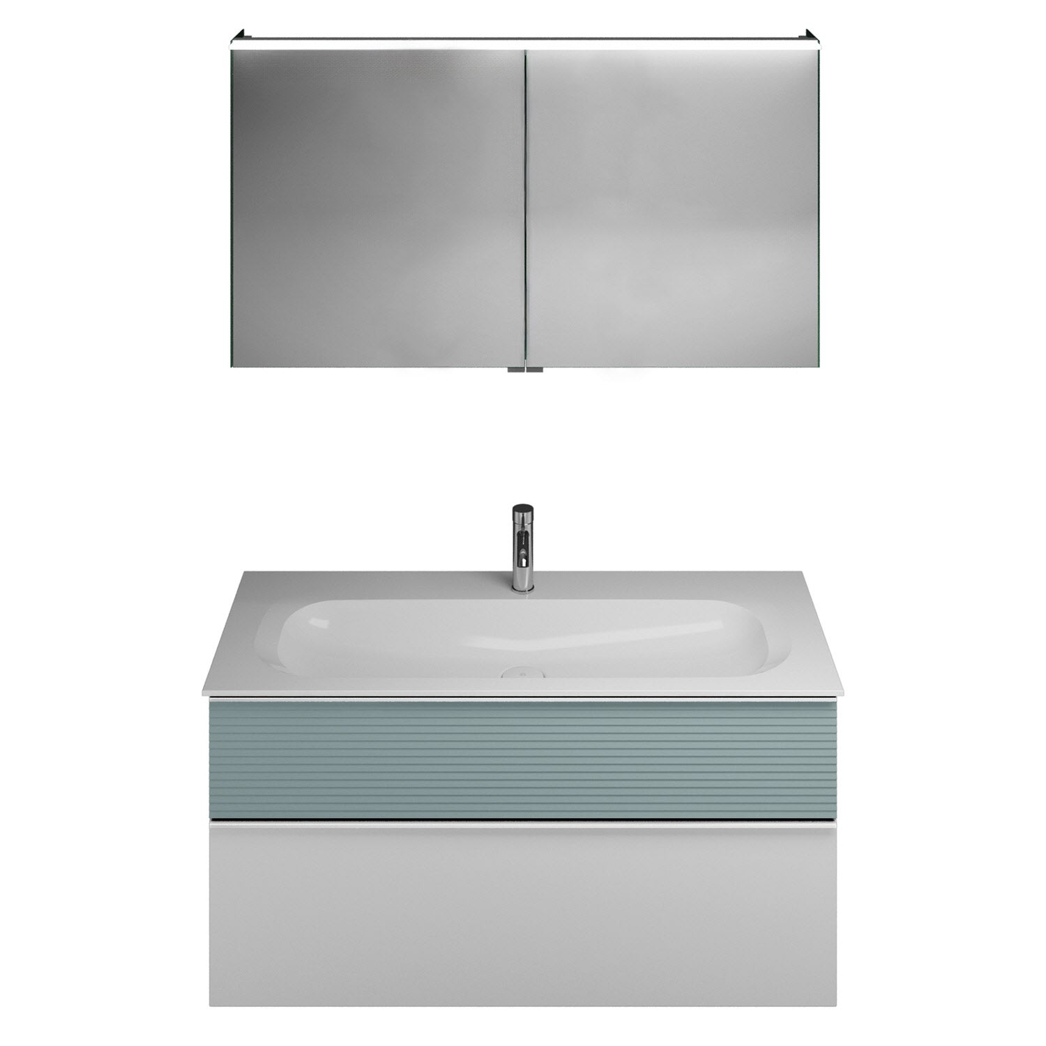 burgbad Fiumo Badmöbel-Set 122 cm mit Waschtisch mit 1 Hahnloch und Unterschrank mit Griff G0146 sowie mit Spiegelschrank