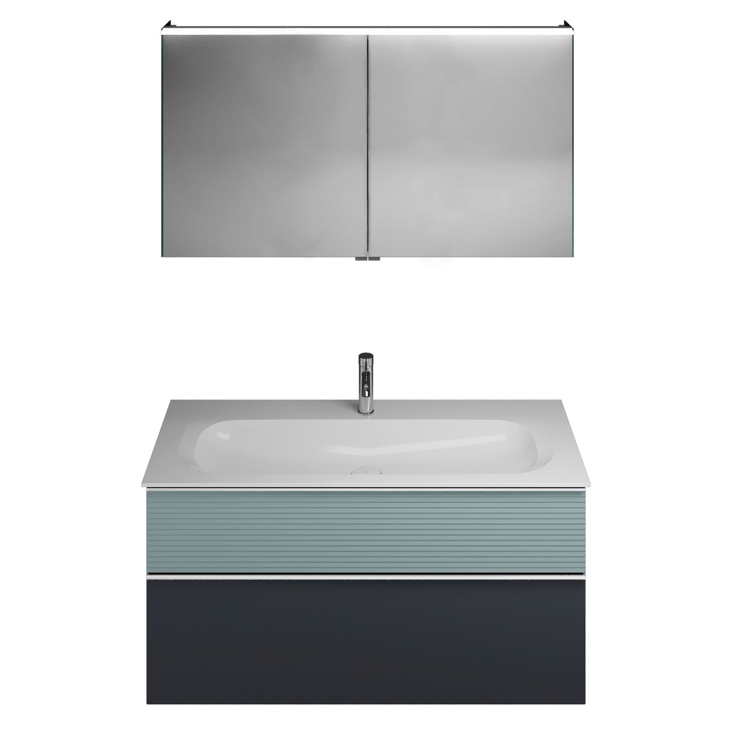 burgbad Fiumo Badmöbel-Set 122 cm mit Waschtisch mit 1 Hahnloch und Unterschrank mit Griff G0146 sowie mit Spiegelschrank
