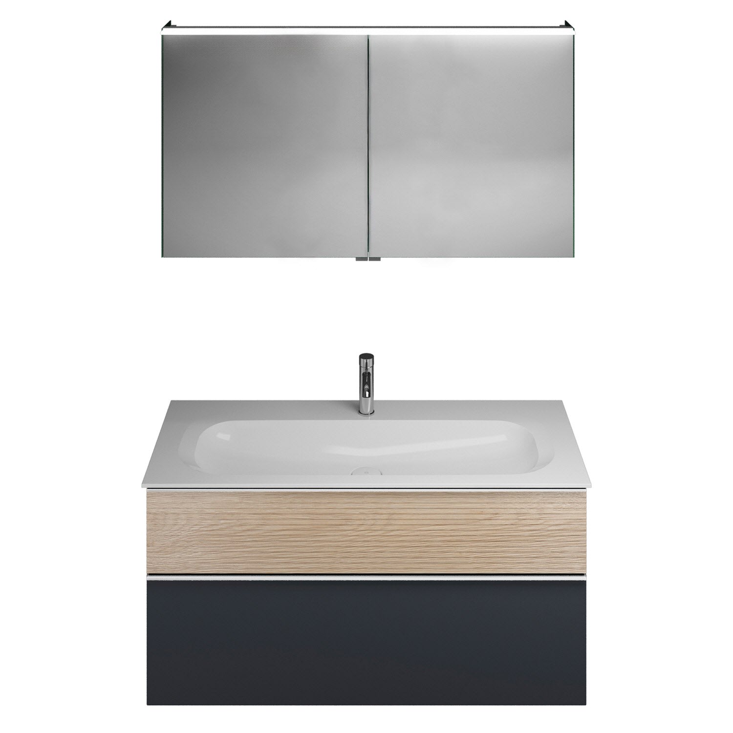 burgbad Fiumo Badmöbel-Set 122 cm mit Waschtisch mit 1 Hahnloch und Unterschrank mit Griff G0146 sowie mit Spiegelschrank