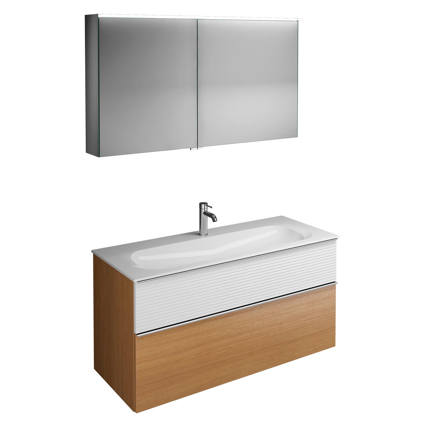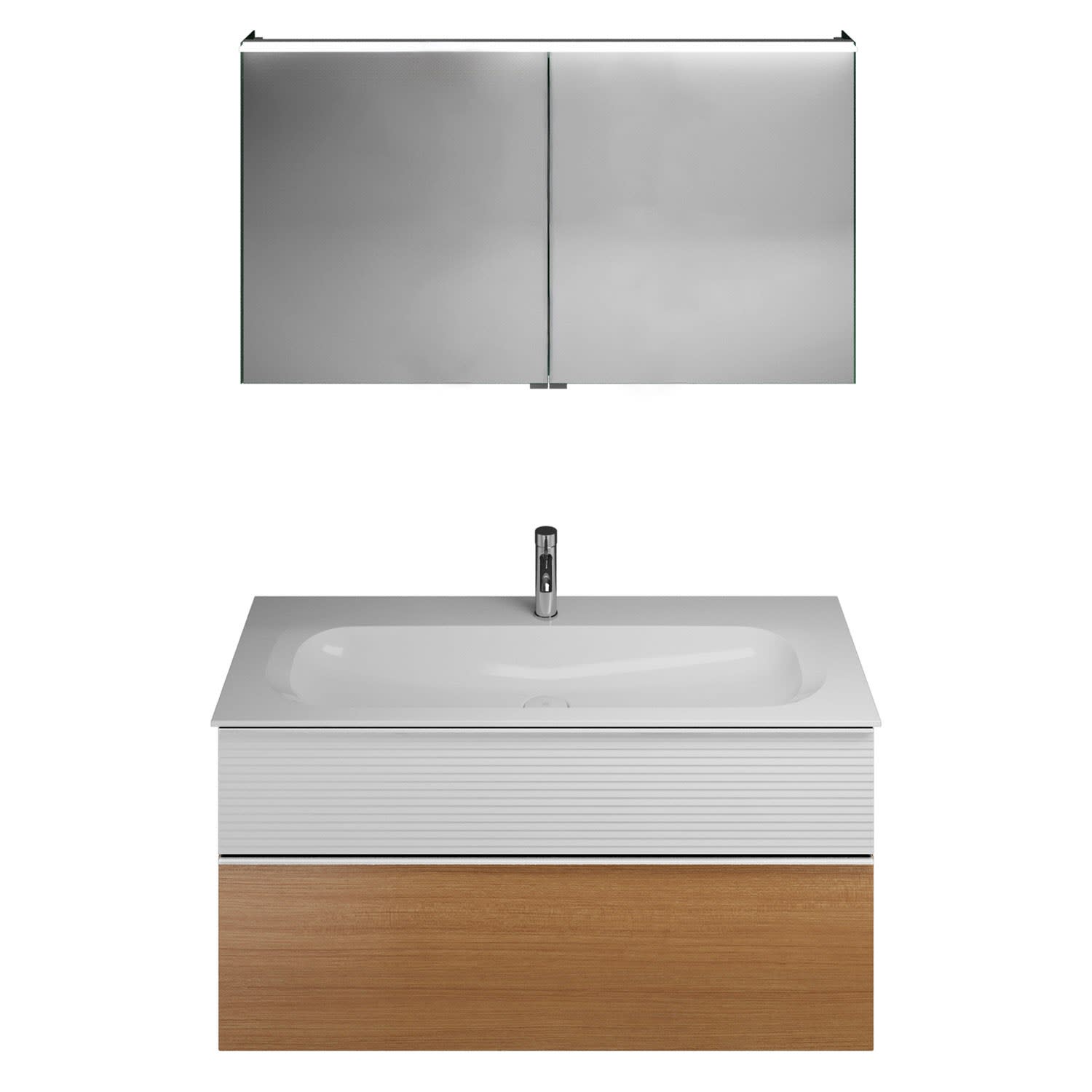 burgbad Fiumo Badmöbel-Set 122 cm mit Waschtisch mit 1 Hahnloch und Unterschrank mit Griff G0146 sowie mit Spiegelschrank