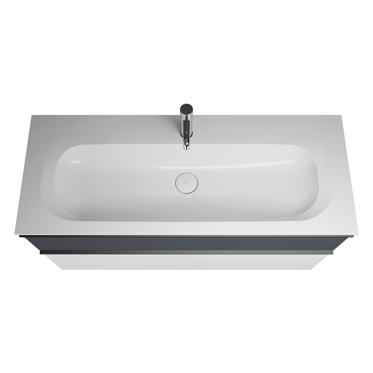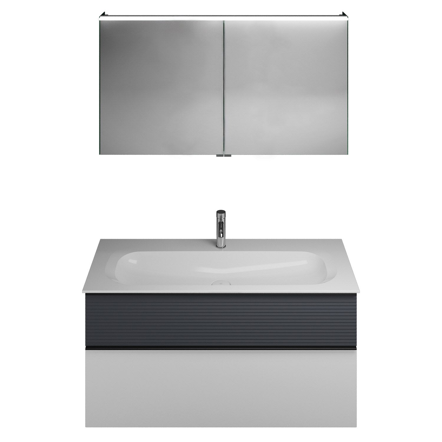 burgbad Fiumo Badmöbel-Set 122 cm mit Waschtisch mit 1 Hahnloch und Unterschrank mit Griff G0200 sowie mit Spiegelschrank