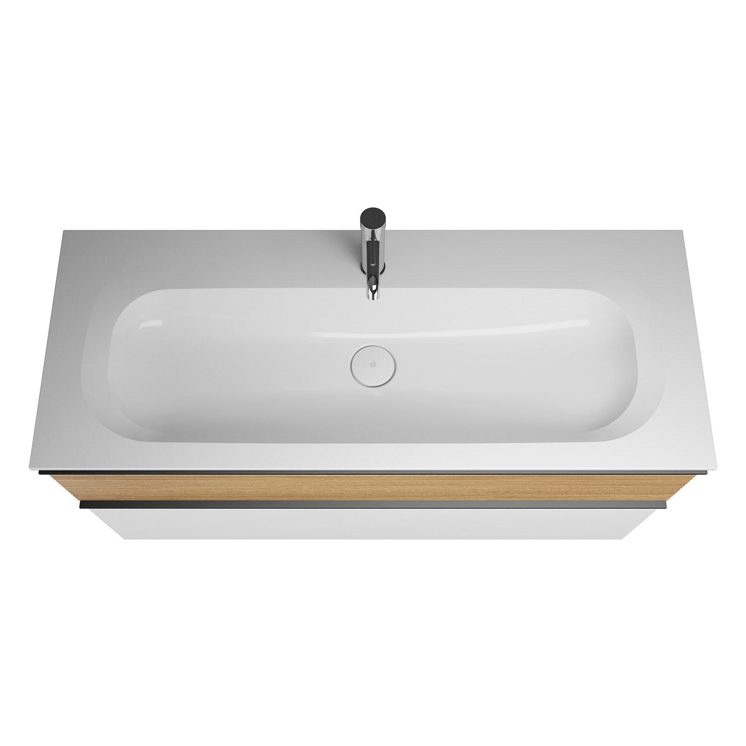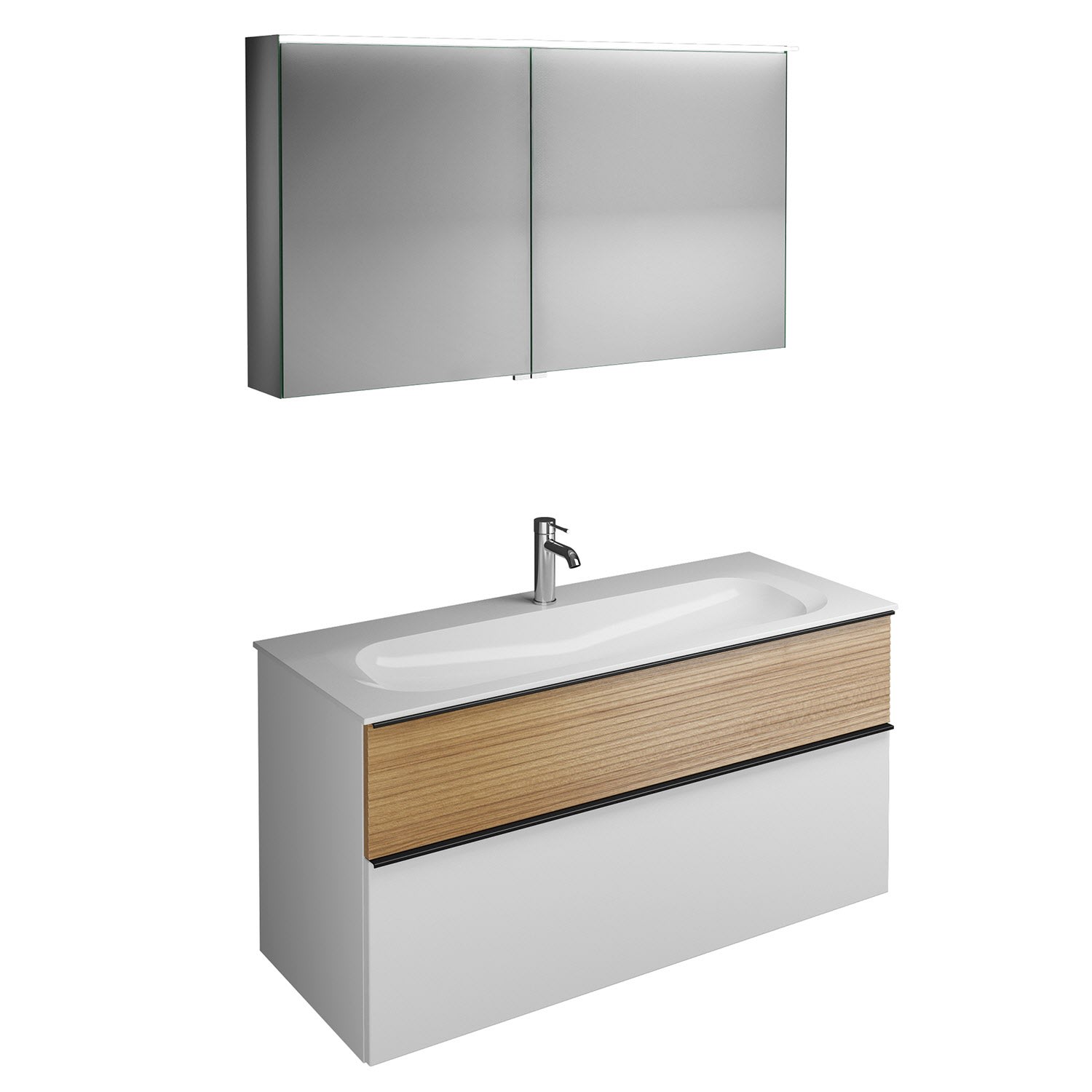 burgbad Fiumo Badmöbel-Set 122 cm mit Waschtisch mit 1 Hahnloch und Unterschrank mit Griff G0200 sowie mit Spiegelschrank