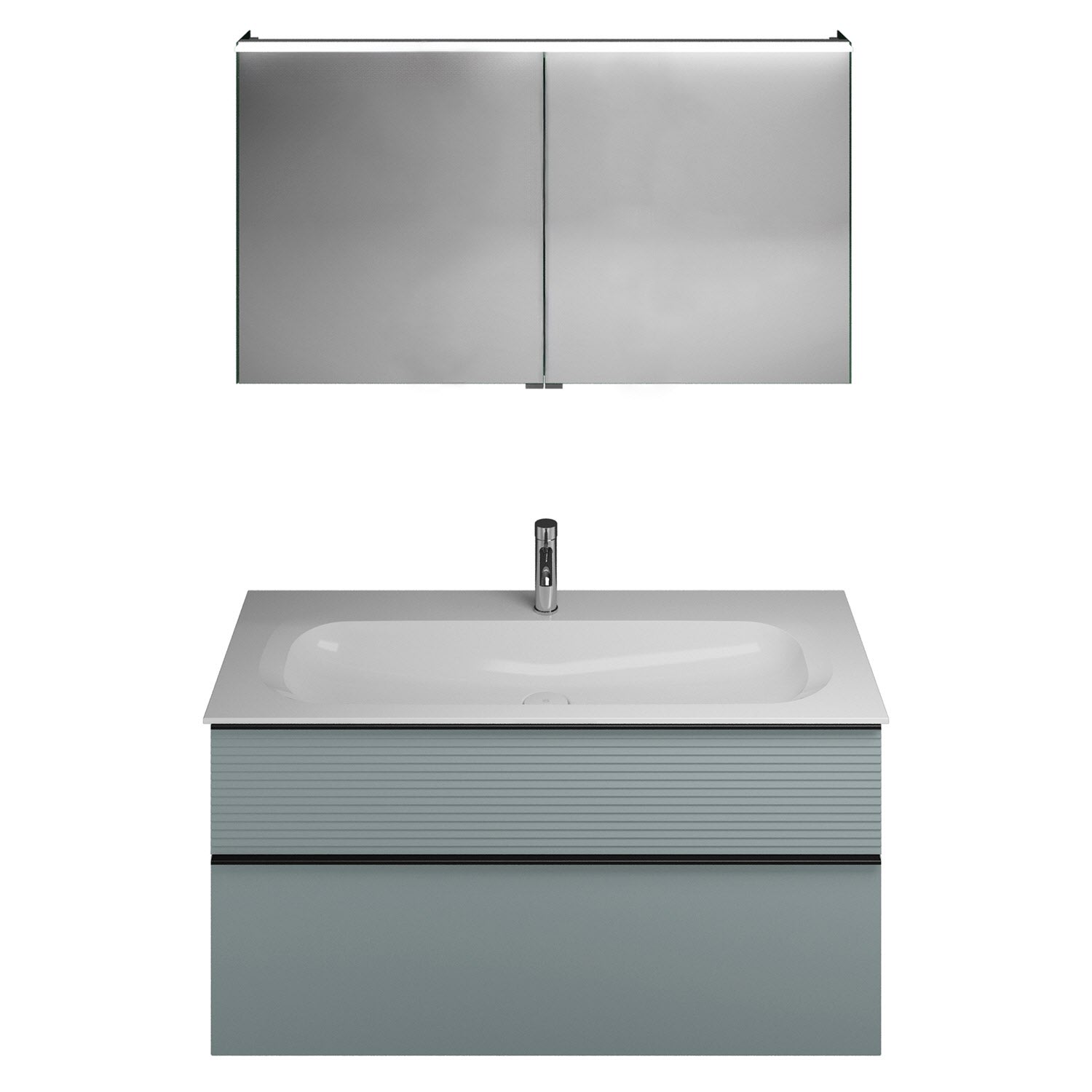 burgbad Fiumo Badmöbel-Set 122 cm mit Waschtisch mit 1 Hahnloch und Unterschrank mit Griff G0200 sowie mit Spiegelschrank