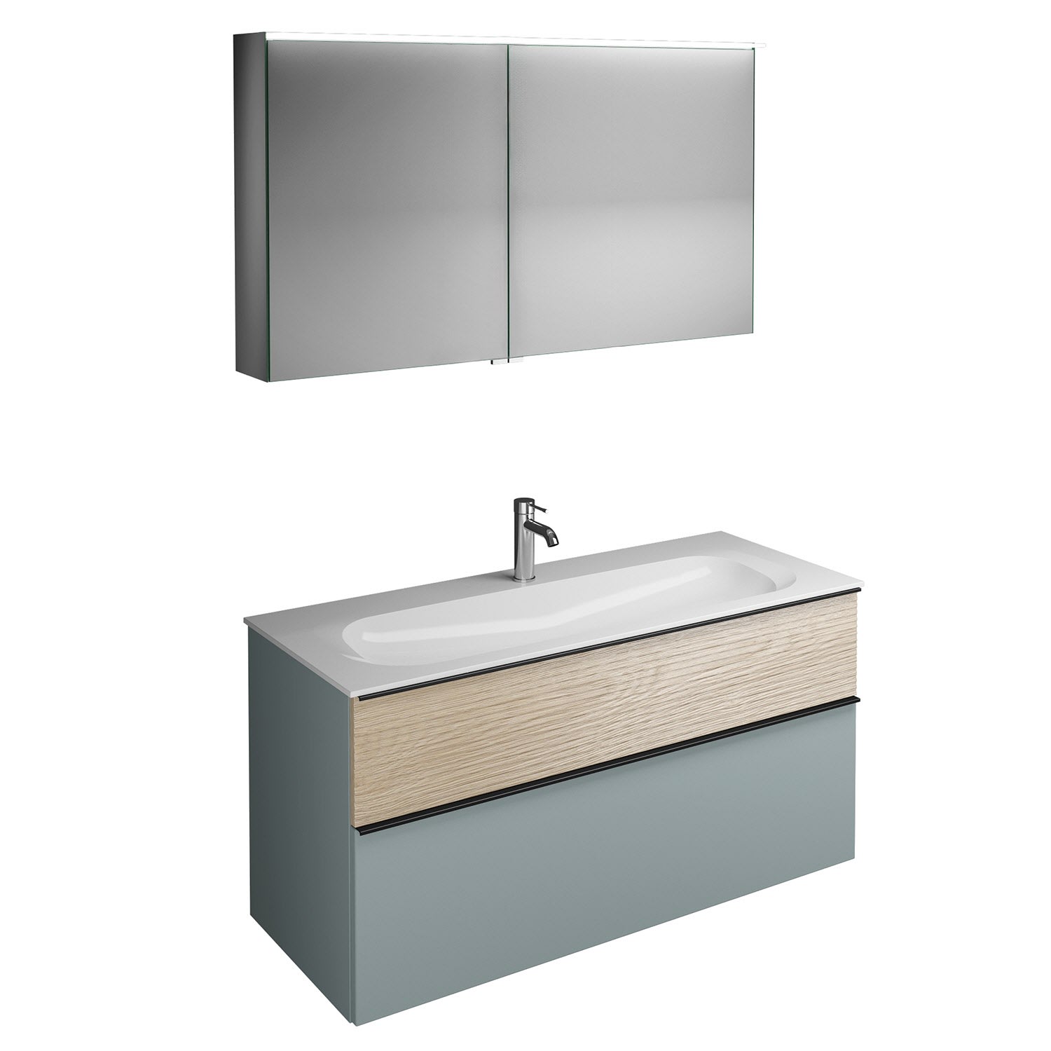 burgbad Fiumo Badmöbel-Set 122 cm mit Waschtisch mit 1 Hahnloch und Unterschrank mit Griff G0200 sowie mit Spiegelschrank