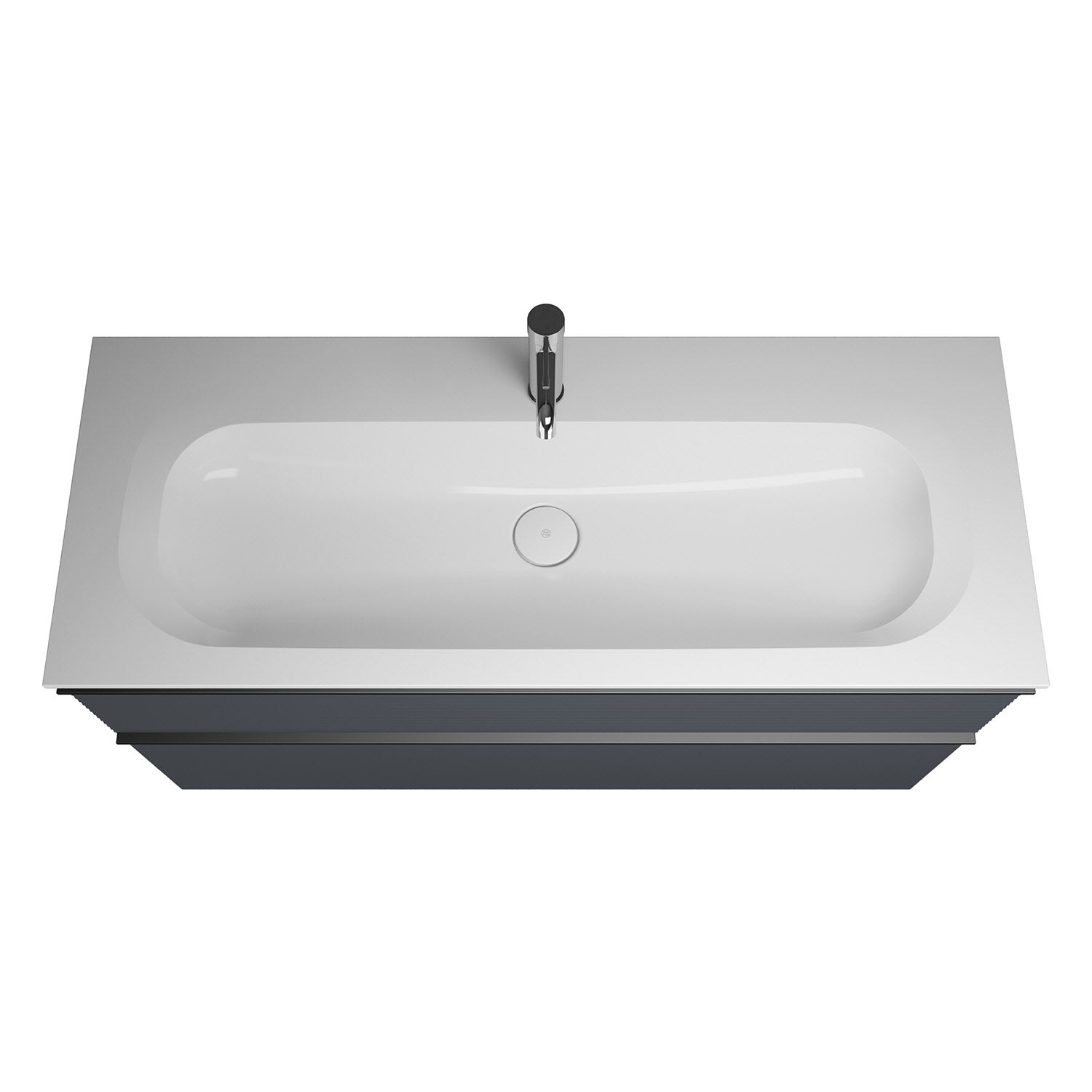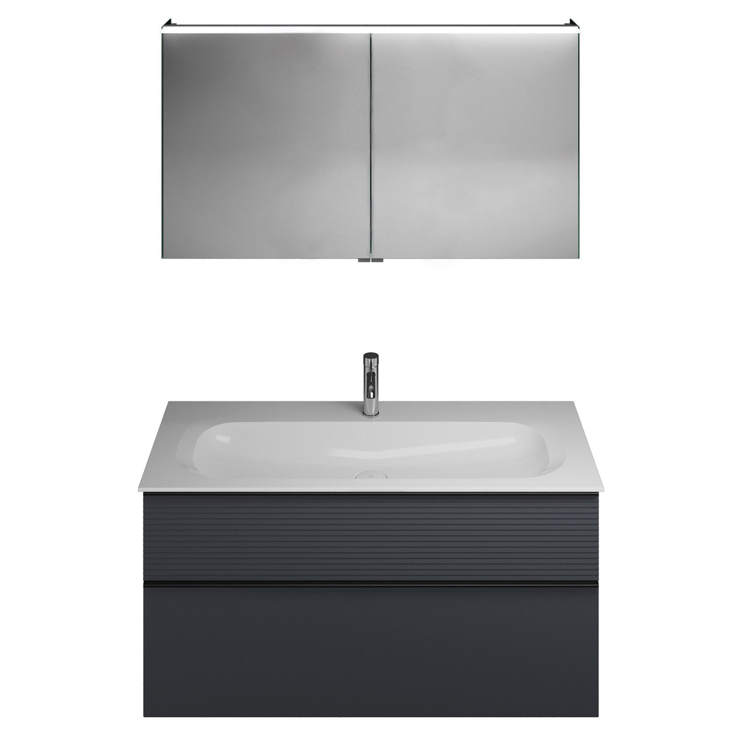 burgbad Fiumo Badmöbel-Set 122 cm mit Waschtisch mit 1 Hahnloch und Unterschrank mit Griff G0200 sowie mit Spiegelschrank
