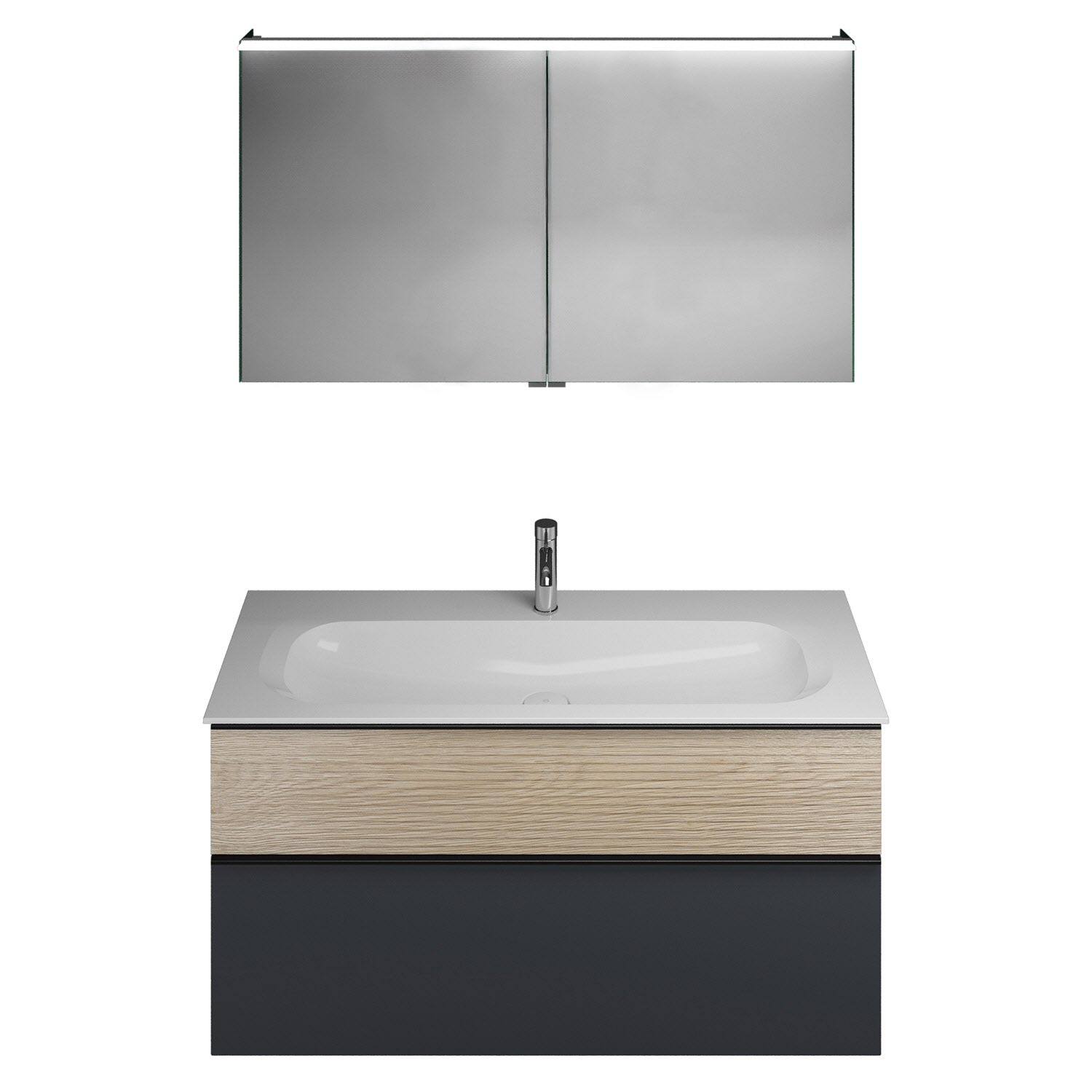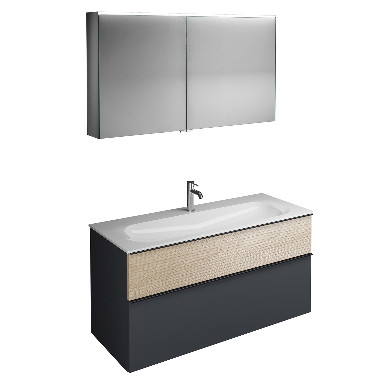 burgbad Fiumo Badmöbel-Set 122 cm mit Waschtisch mit 1 Hahnloch und Unterschrank mit Griff G0200 sowie mit Spiegelschrank