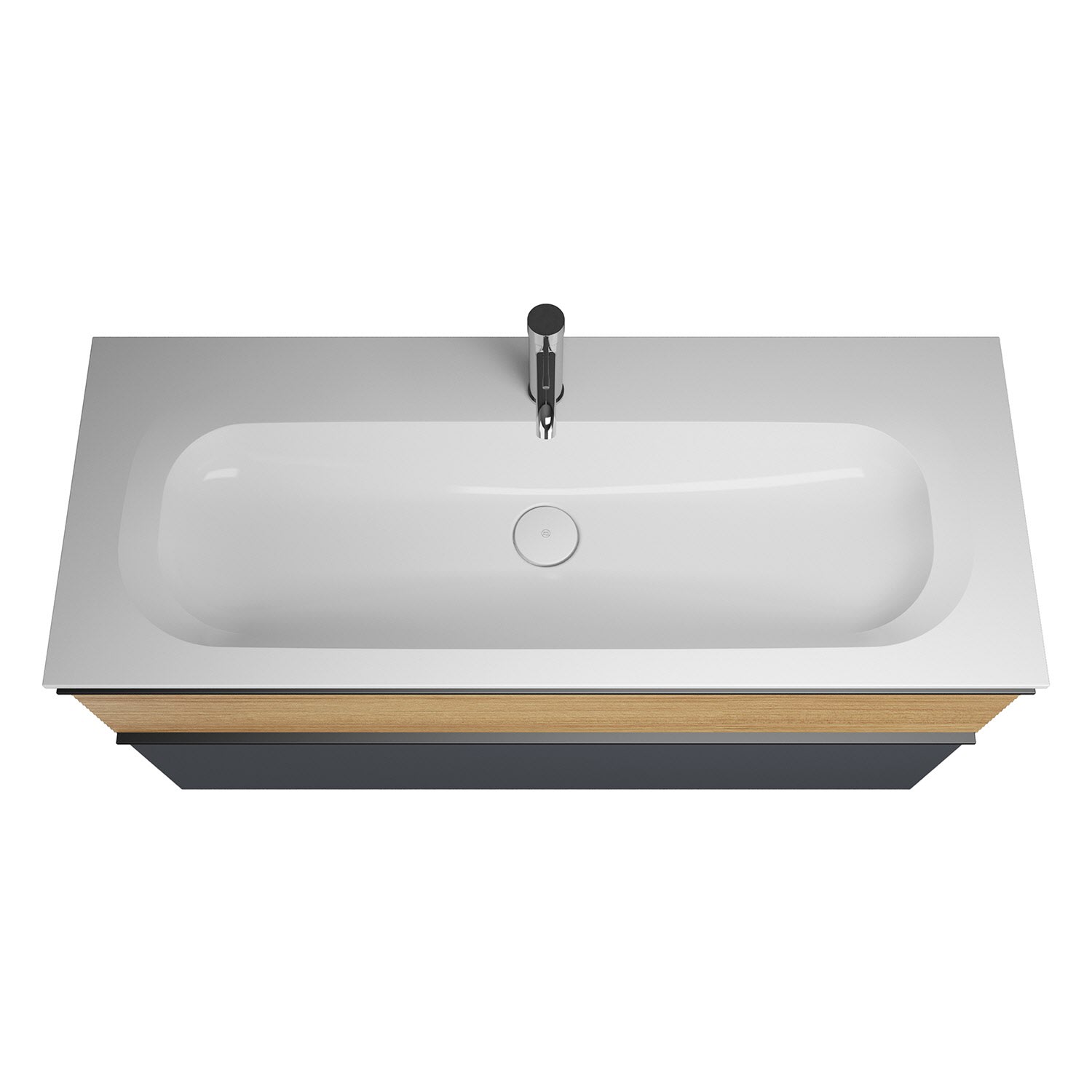 burgbad Fiumo Badmöbel-Set 122 cm mit Waschtisch mit 1 Hahnloch und Unterschrank mit Griff G0200 sowie mit Spiegelschrank