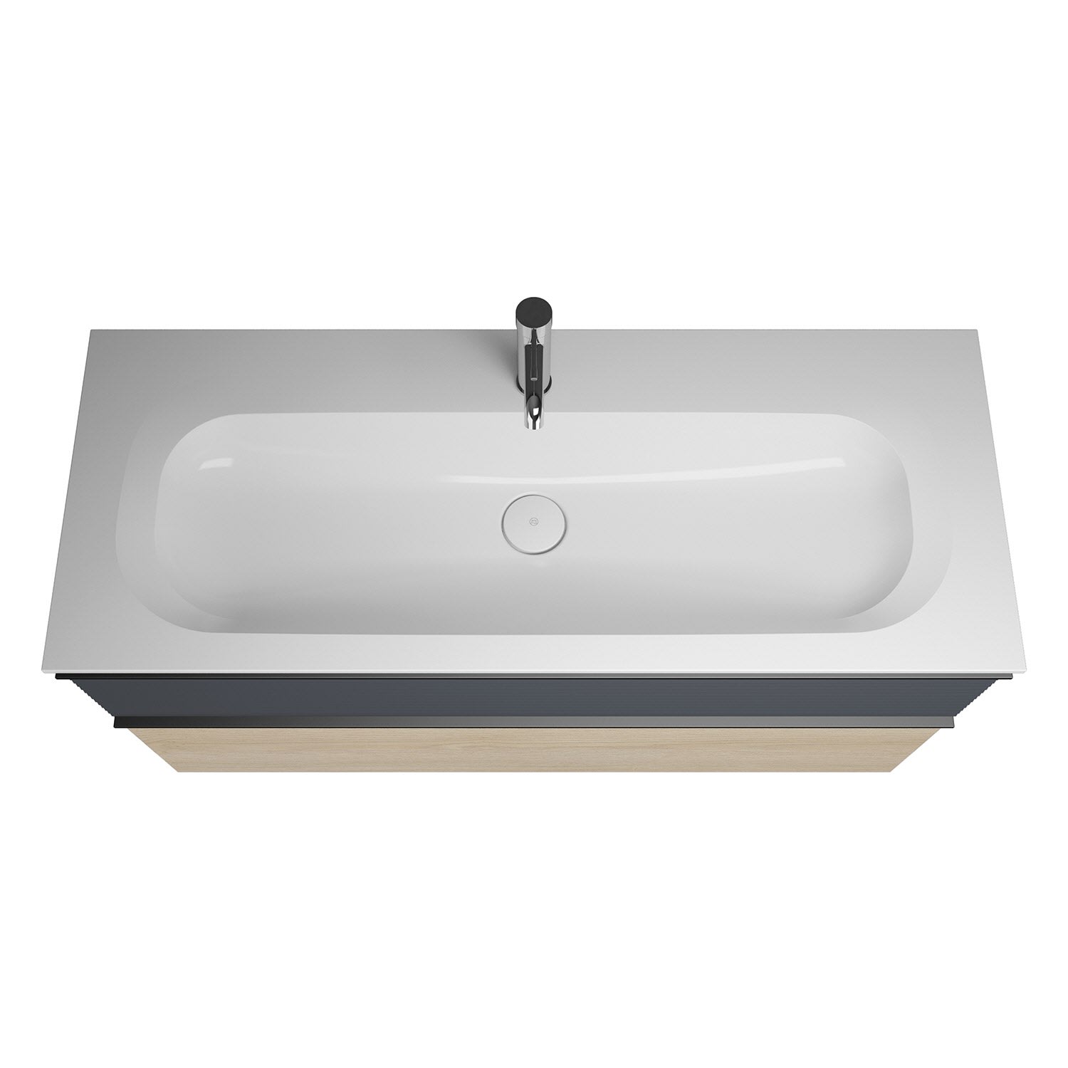 burgbad Fiumo Badmöbel-Set 122 cm mit Waschtisch mit 1 Hahnloch und Unterschrank mit Griff G0200 sowie mit Spiegelschrank