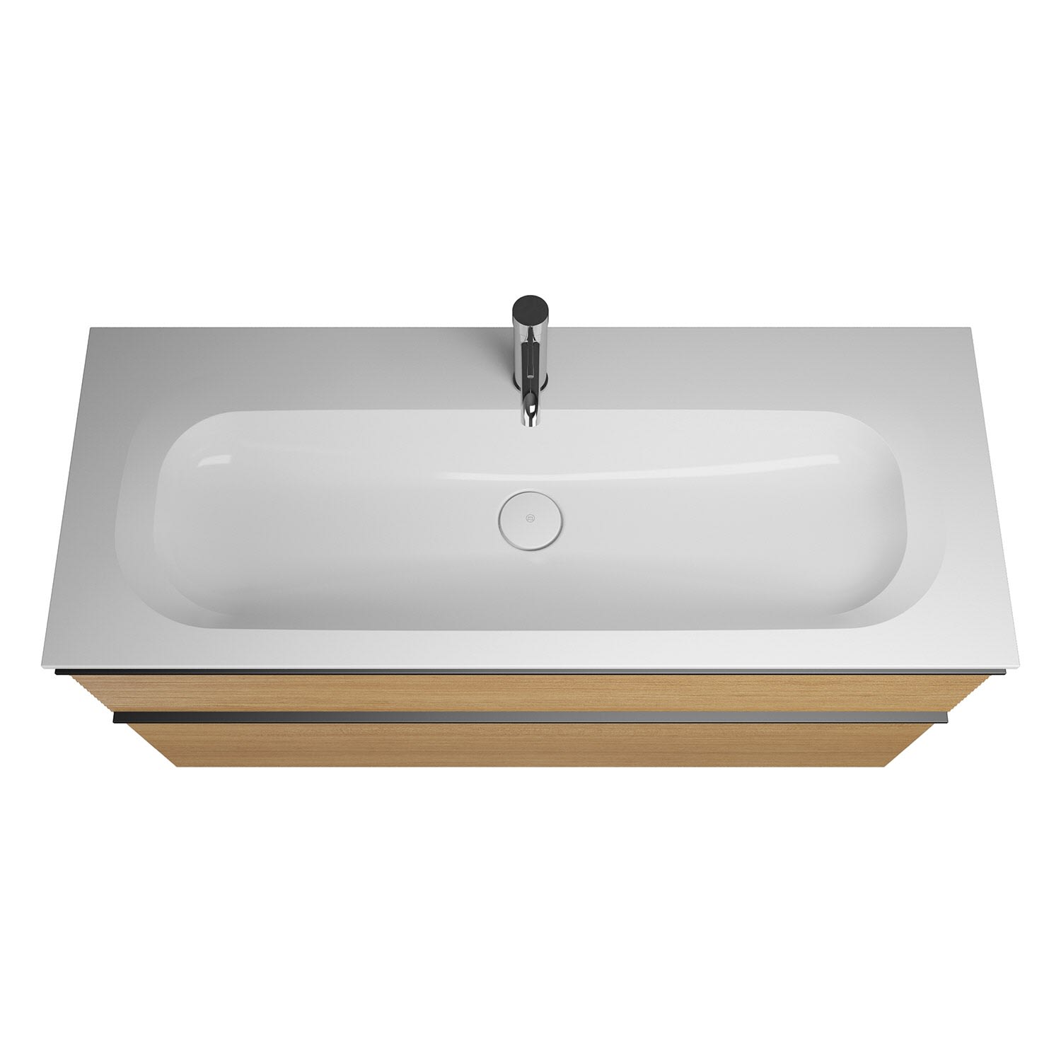 burgbad Fiumo Badmöbel-Set 122 cm mit Waschtisch mit 1 Hahnloch und Unterschrank mit Griff G0200 sowie mit Spiegelschrank