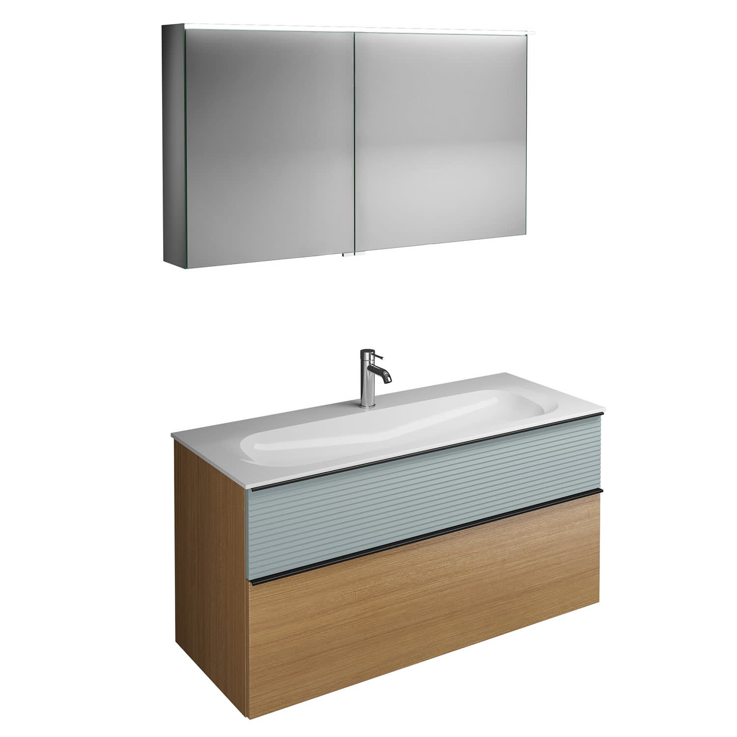 burgbad Fiumo Badmöbel-Set 122 cm mit Waschtisch mit 1 Hahnloch und Unterschrank mit Griff G0200 sowie mit Spiegelschrank
