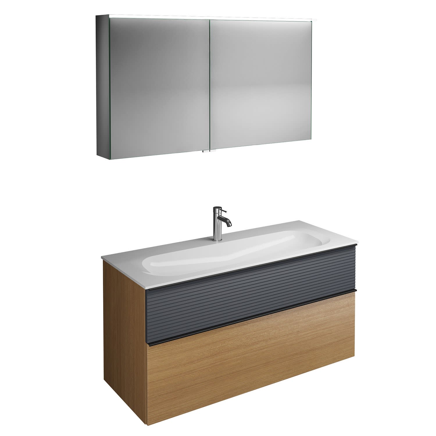 burgbad Fiumo Badmöbel-Set 122 cm mit Waschtisch mit 1 Hahnloch und Unterschrank mit Griff G0200 sowie mit Spiegelschrank