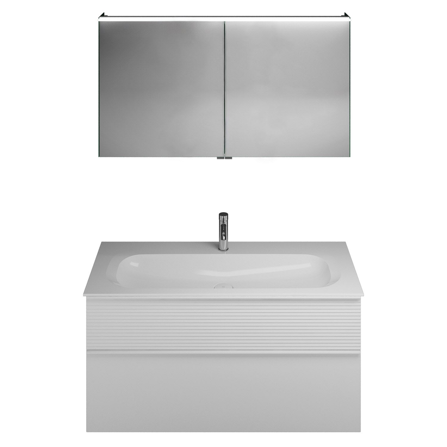 burgbad Fiumo Badmöbel-Set 122 cm mit Waschtisch mit 1 Hahnloch und Unterschrank mit Griff G0223 sowie mit Spiegelschrank