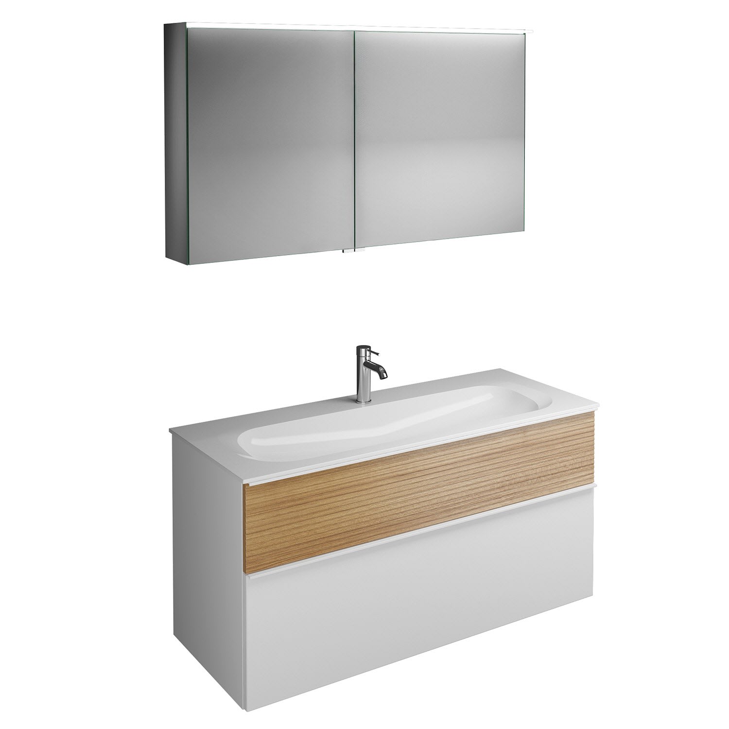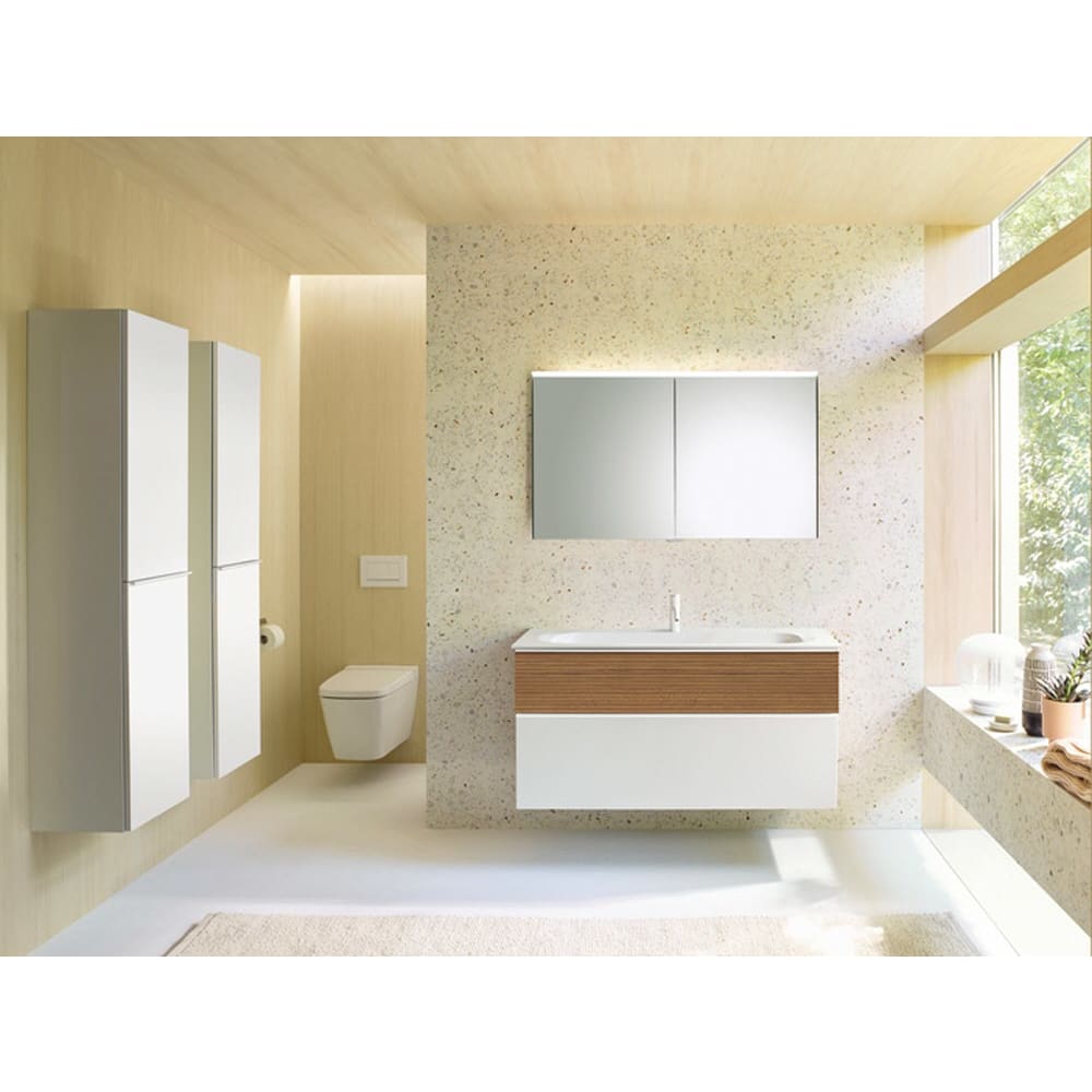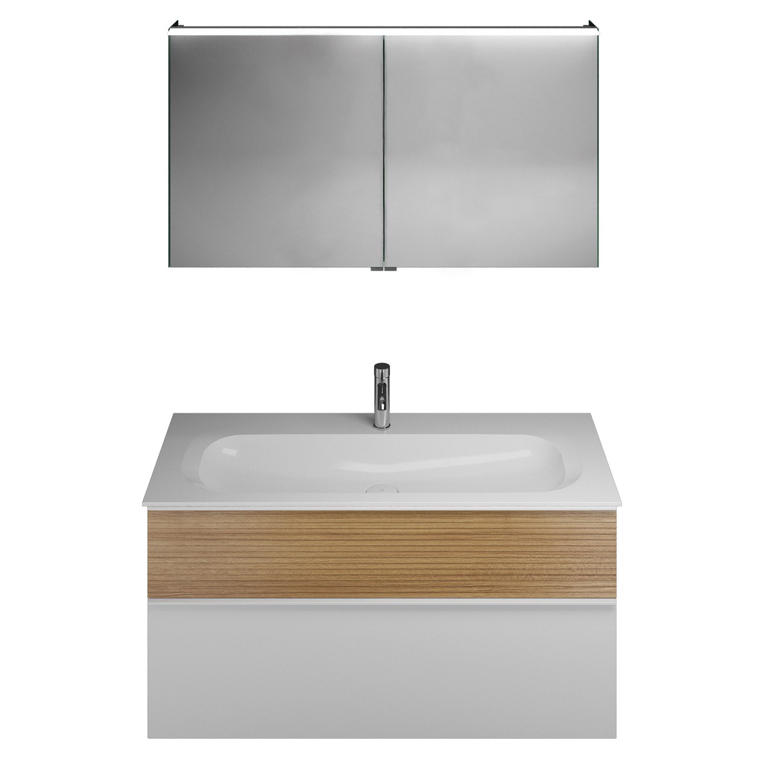 burgbad Fiumo Badmöbel-Set 122 cm mit Waschtisch mit 1 Hahnloch und Unterschrank mit Griff G0223 sowie mit Spiegelschrank