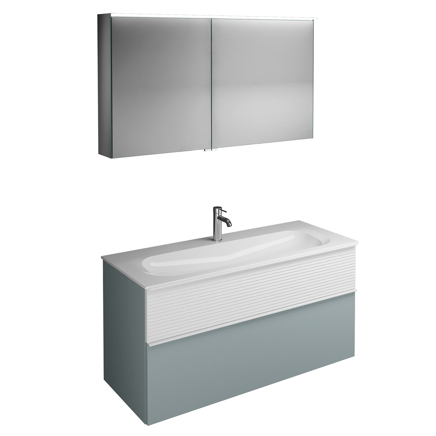 burgbad Fiumo Badmöbel-Set 122 cm mit Waschtisch mit 1 Hahnloch und Unterschrank mit Griff G0223 sowie mit Spiegelschrank