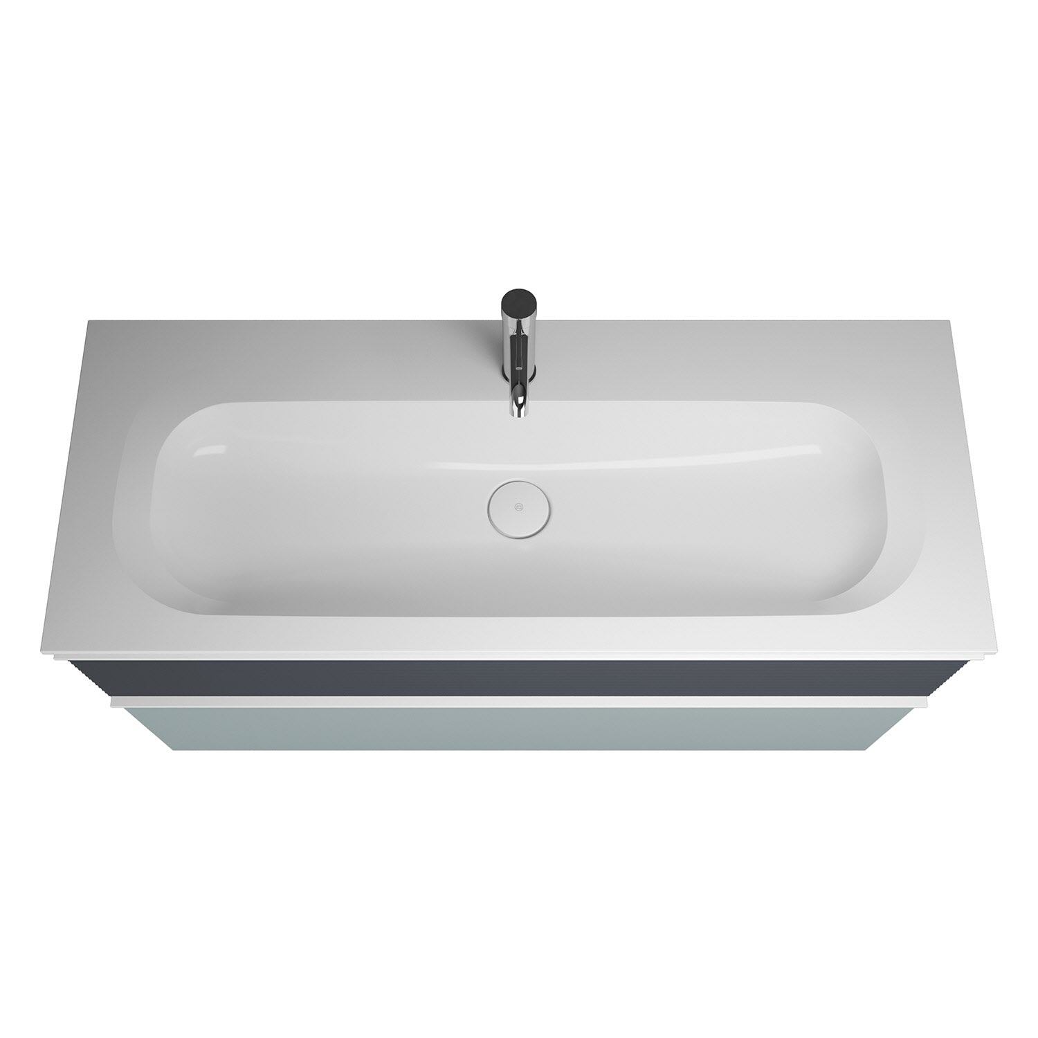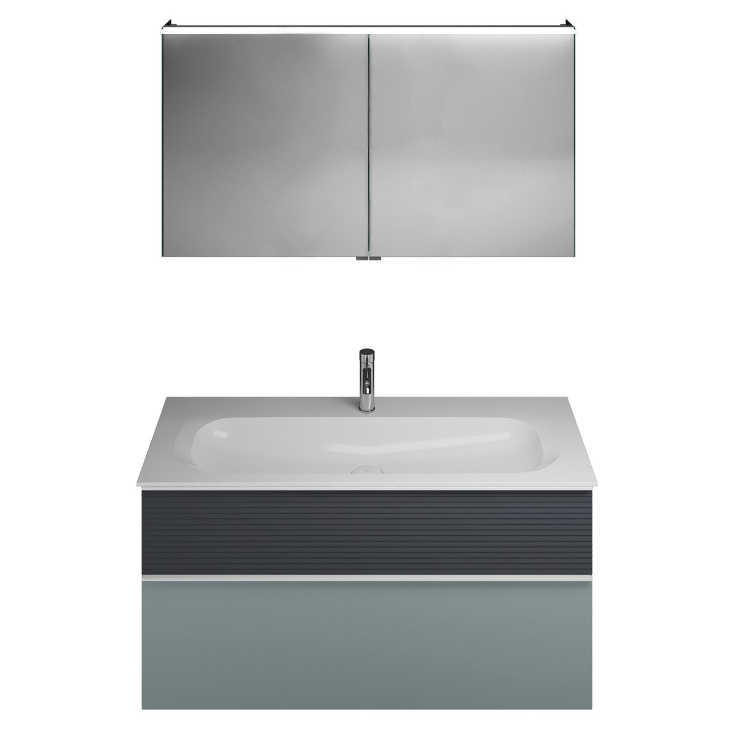 burgbad Fiumo Badmöbel-Set 122 cm mit Waschtisch mit 1 Hahnloch und Unterschrank mit Griff G0223 sowie mit Spiegelschrank