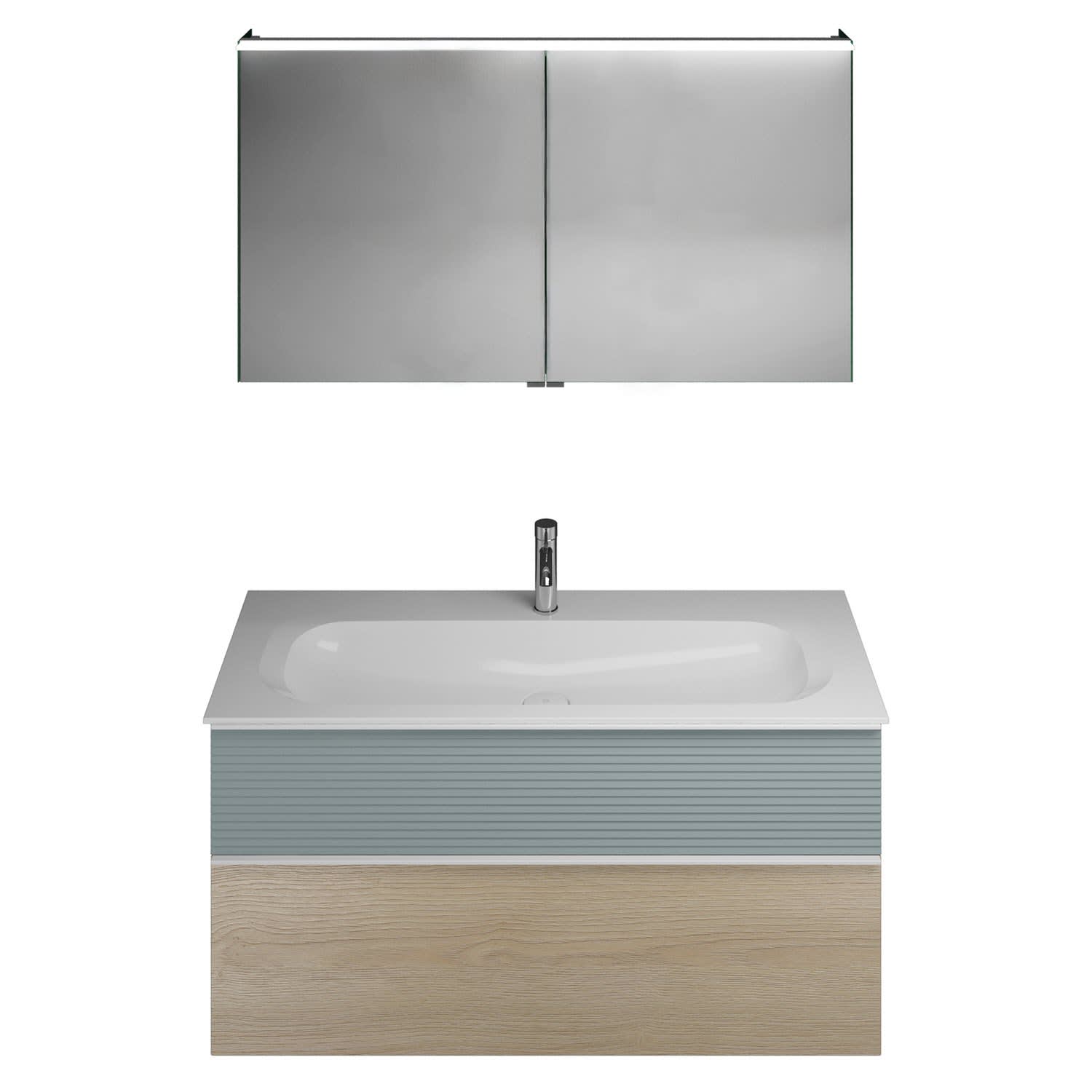 burgbad Fiumo Badmöbel-Set 122 cm mit Waschtisch mit 1 Hahnloch und Unterschrank mit Griff G0223 sowie mit Spiegelschrank