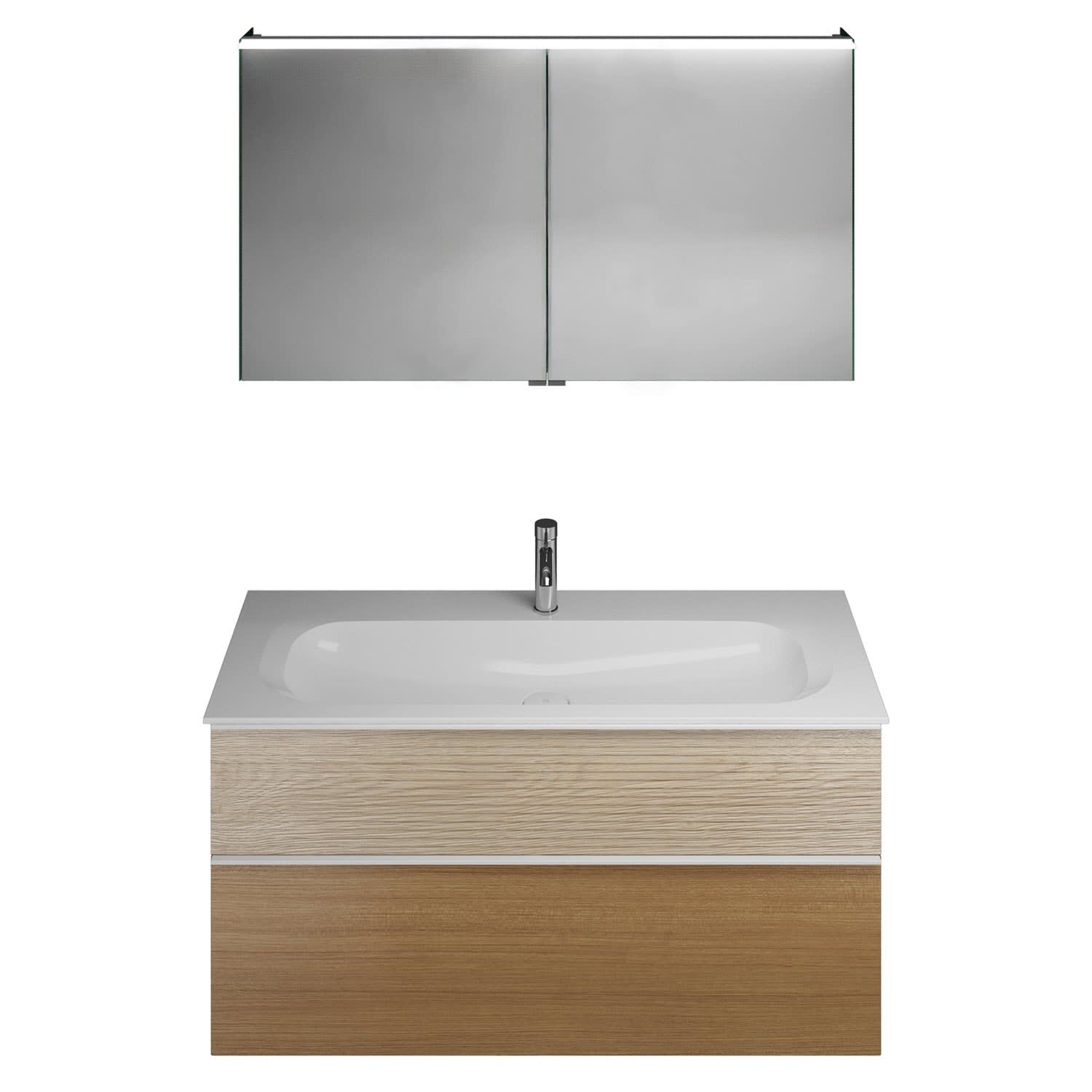 burgbad Fiumo Badmöbel-Set 122 cm mit Waschtisch mit 1 Hahnloch und Unterschrank mit Griff G0223 sowie mit Spiegelschrank