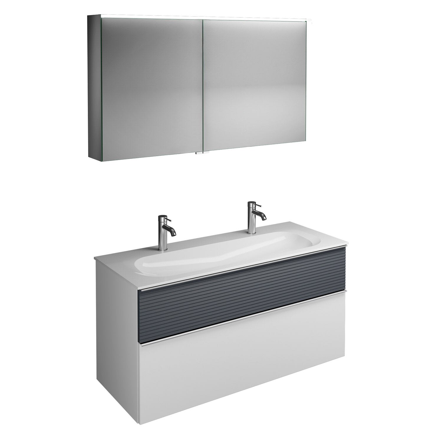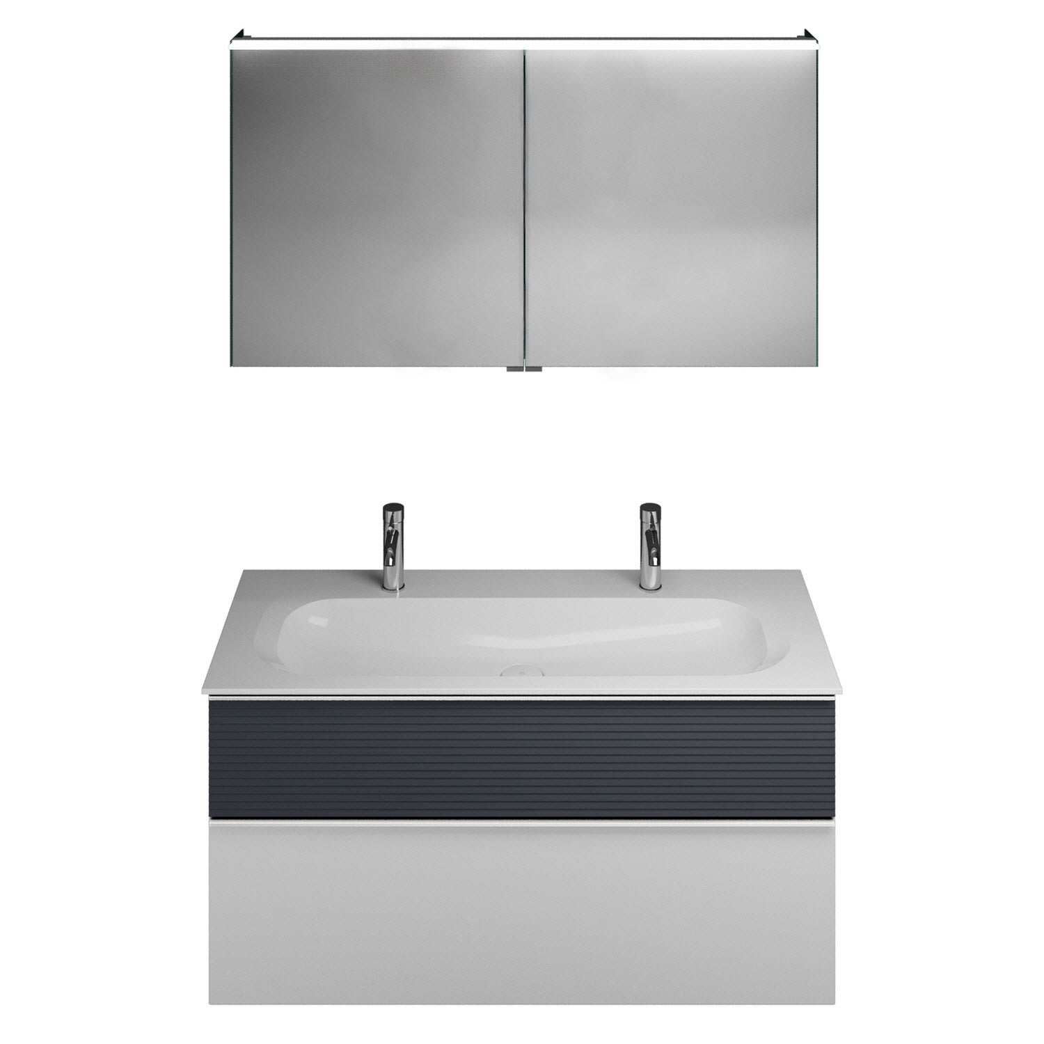 burgbad Fiumo Badmöbel-Set 122 cm mit Waschtisch mit 2 Hahnlöcher und Unterschrank mit Griff G0146 sowie mit Spiegelschrank