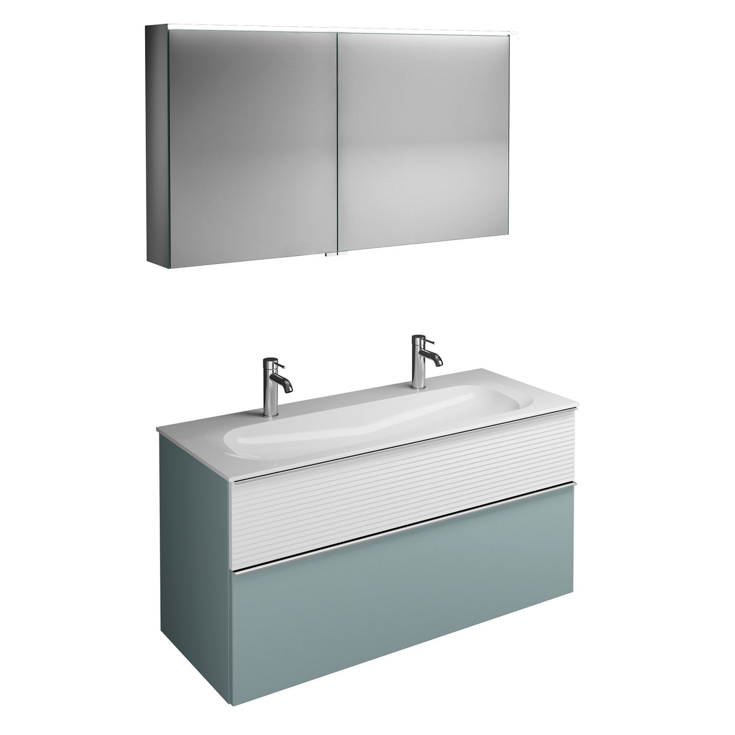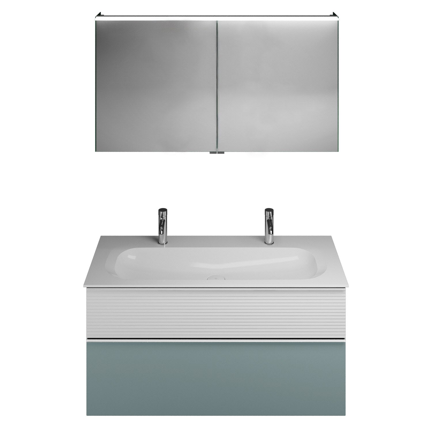 burgbad Fiumo Badmöbel-Set 122 cm mit Waschtisch mit 2 Hahnlöcher und Unterschrank mit Griff G0146 sowie mit Spiegelschrank