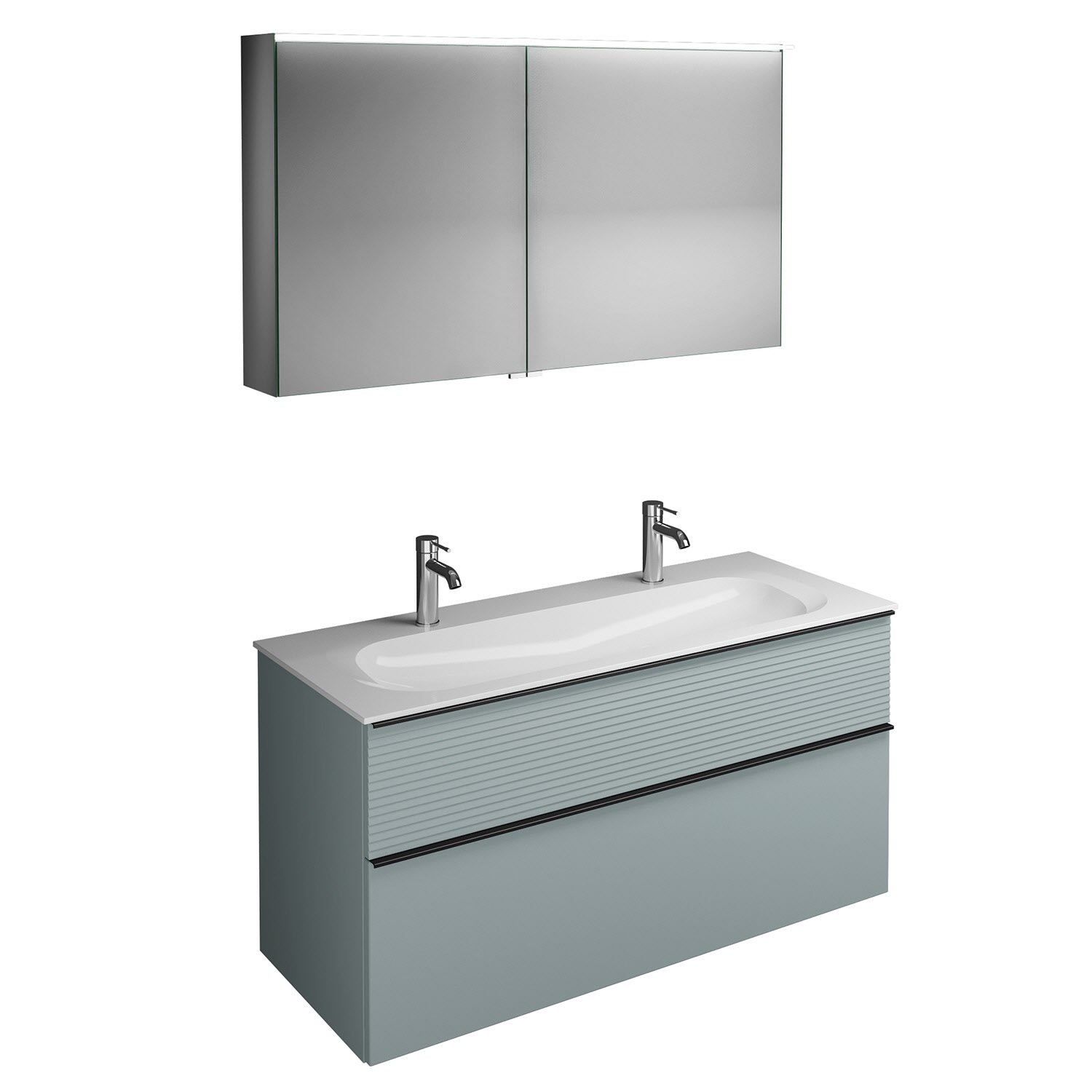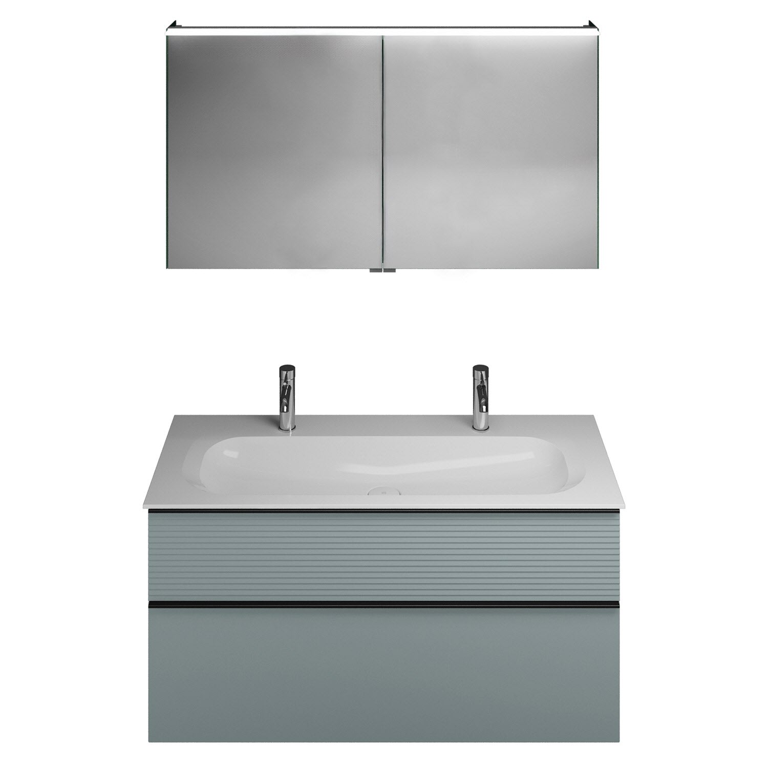 burgbad Fiumo Badmöbel-Set 122 cm mit Waschtisch mit 2 Hahnlöcher und Unterschrank mit Griff G0200 sowie mit Spiegelschrank