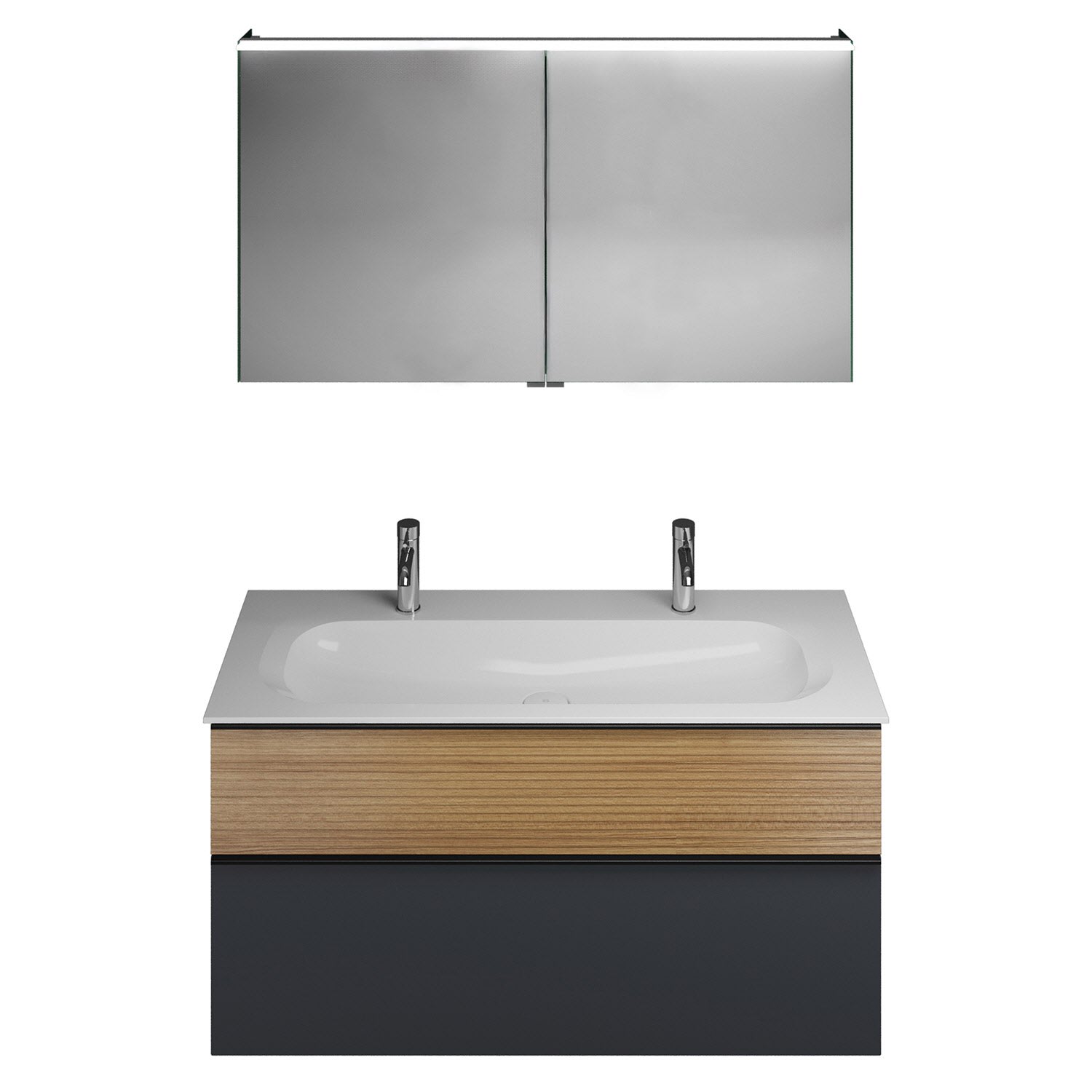 burgbad Fiumo Badmöbel-Set 122 cm mit Waschtisch mit 2 Hahnlöcher und Unterschrank mit Griff G0200 sowie mit Spiegelschrank