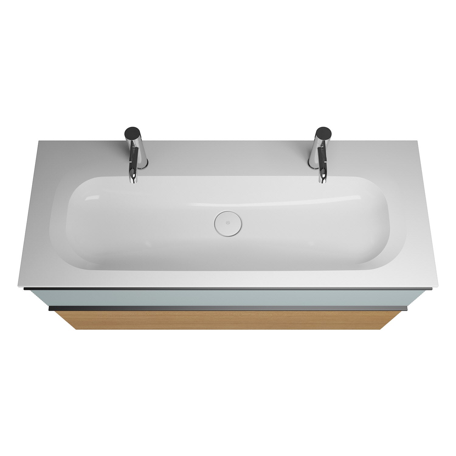 burgbad Fiumo Badmöbel-Set 122 cm mit Waschtisch mit 2 Hahnlöcher und Unterschrank mit Griff G0200 sowie mit Spiegelschrank