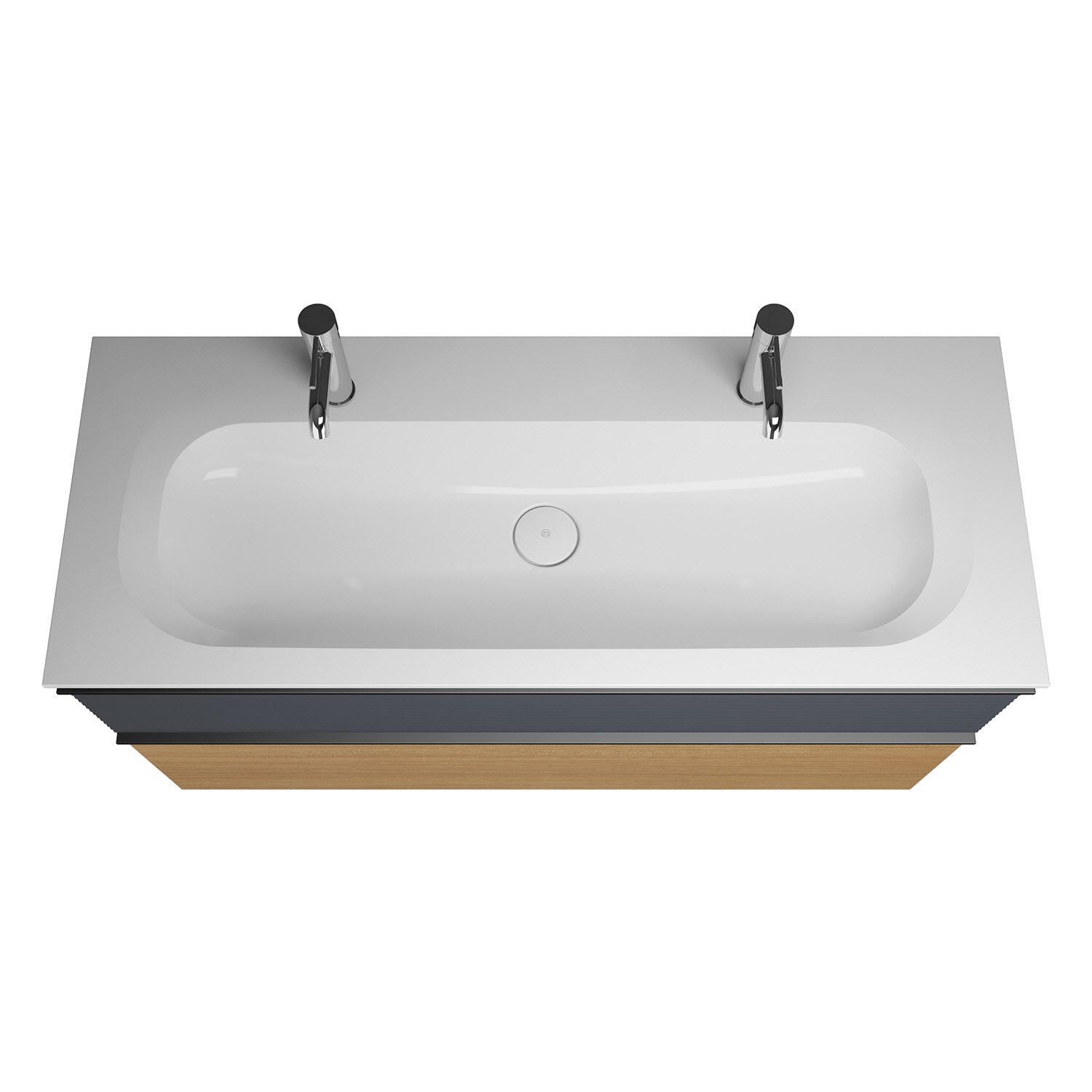 burgbad Fiumo Badmöbel-Set 122 cm mit Waschtisch mit 2 Hahnlöcher und Unterschrank mit Griff G0200 sowie mit Spiegelschrank