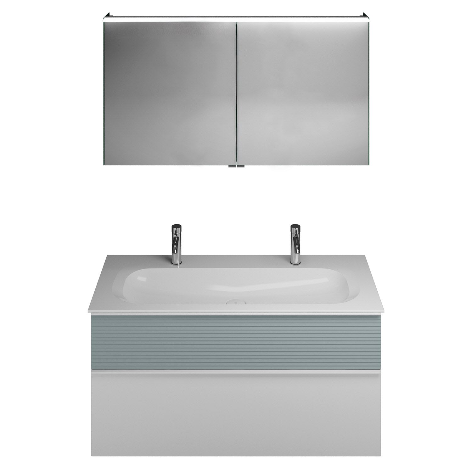 burgbad Fiumo Badmöbel-Set 122 cm mit Waschtisch mit 2 Hahnlöcher und Unterschrank mit Griff G0223 sowie mit Spiegelschrank