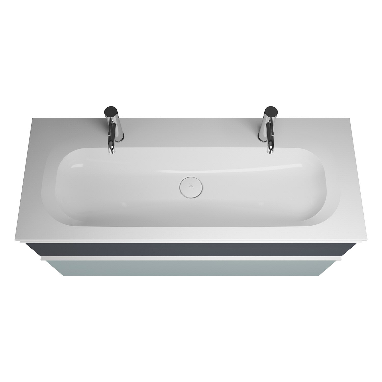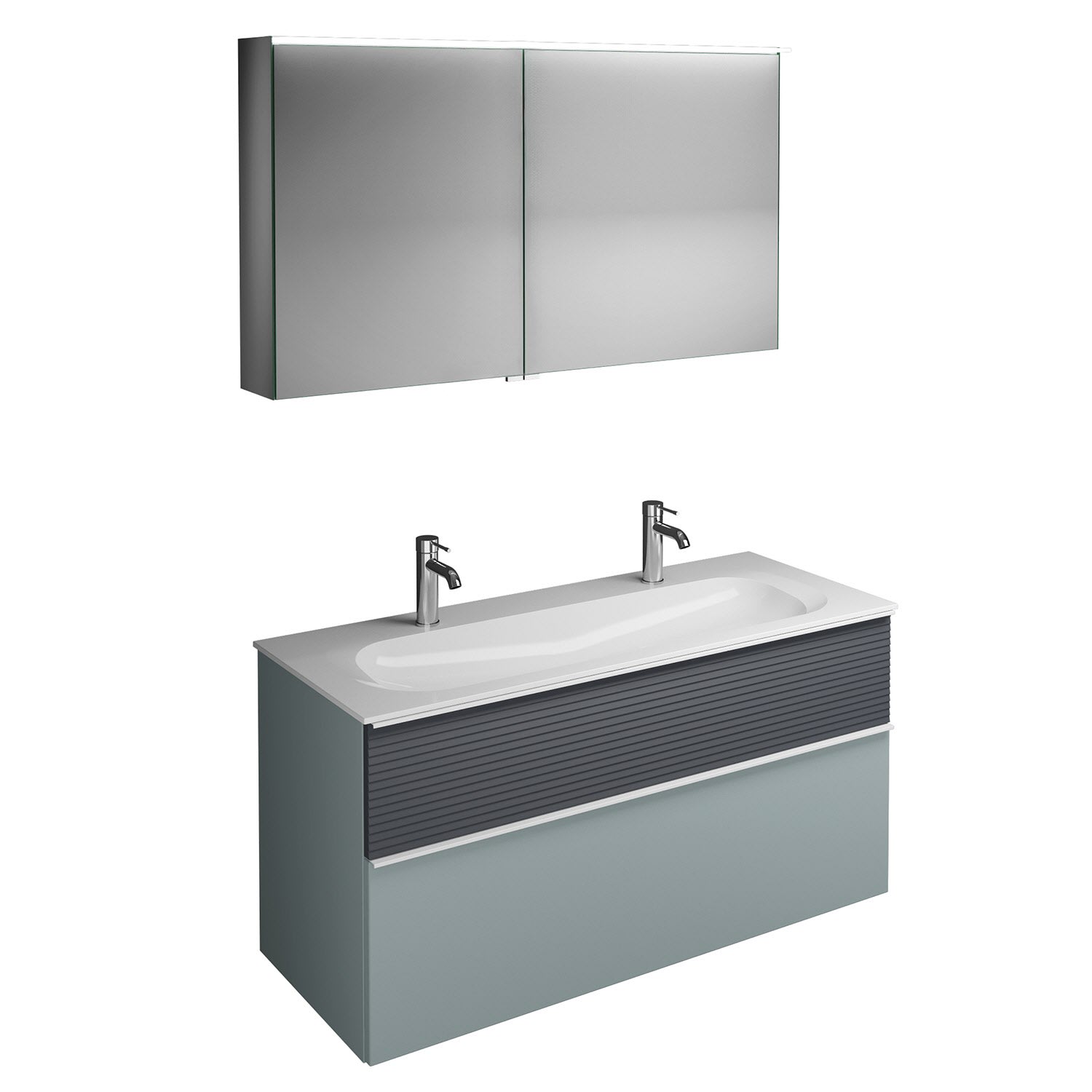 burgbad Fiumo Badmöbel-Set 122 cm mit Waschtisch mit 2 Hahnlöcher und Unterschrank mit Griff G0223 sowie mit Spiegelschrank